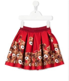 MONNALISA TEDDY BEAR-MOTIF PLEATED SKIRT