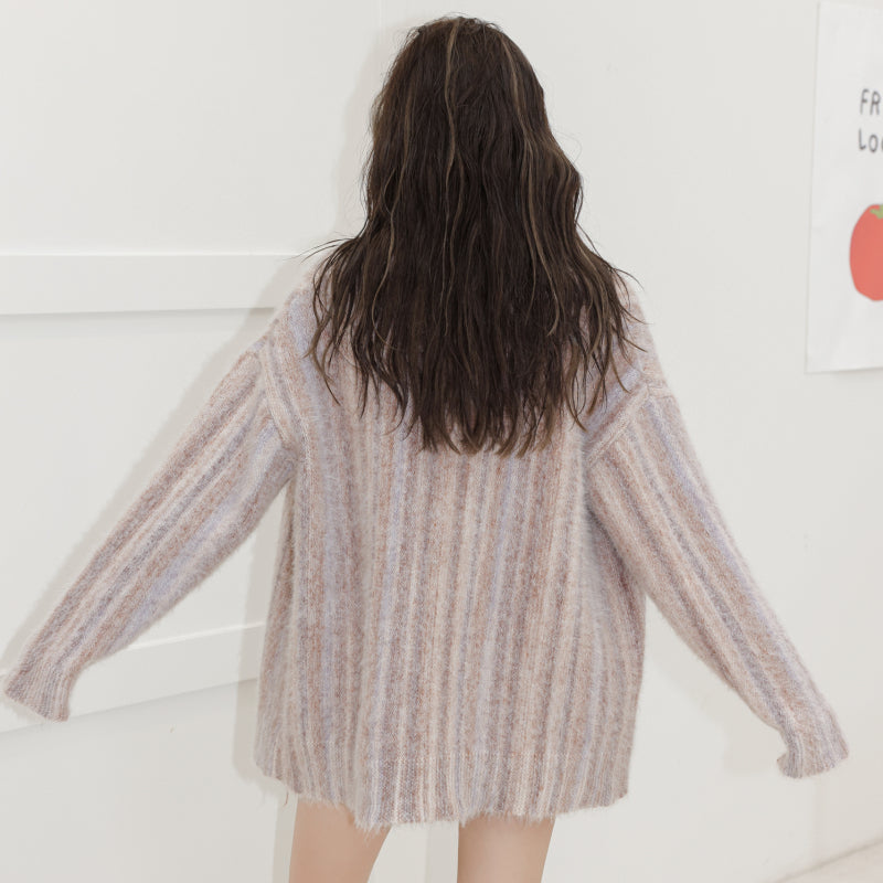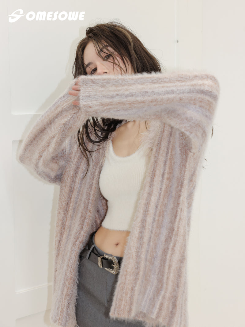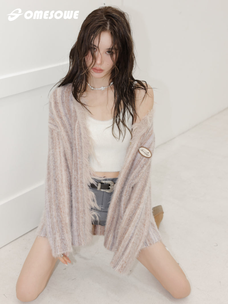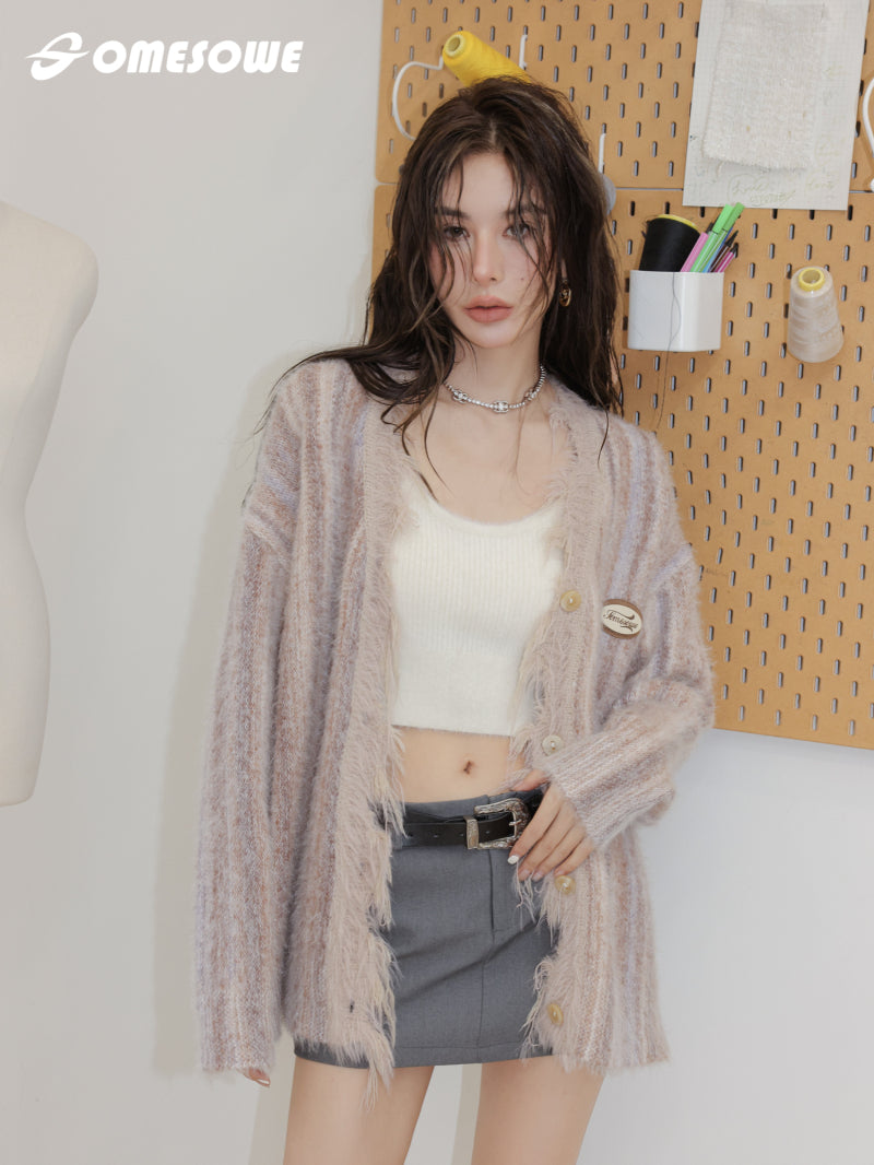 SOMESOWE MIXED COLOR FRINGED CARDIGAN KNITTED WITH RAW EDGE
