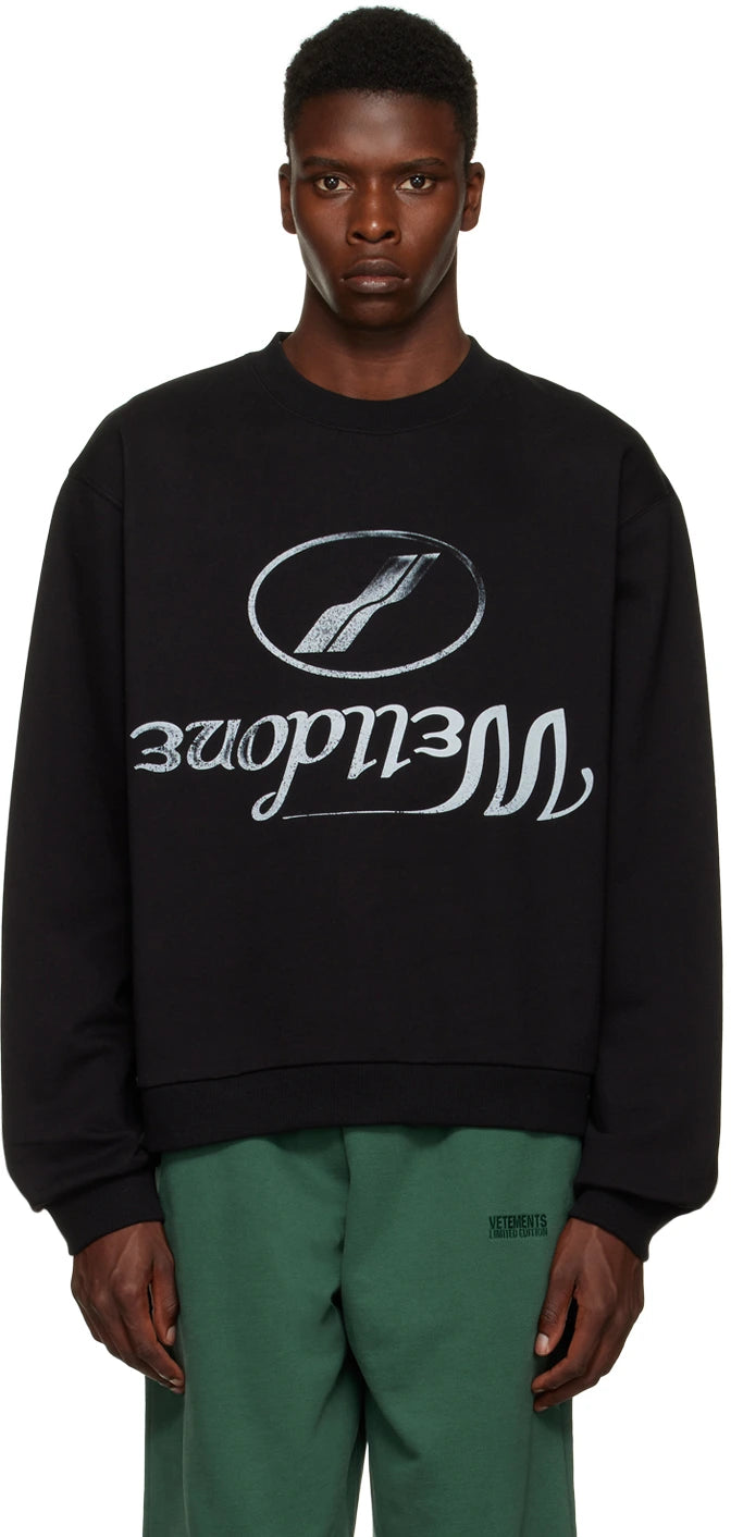 WE11DONE BLACK REVERSED LOGO SWEATSHIRT