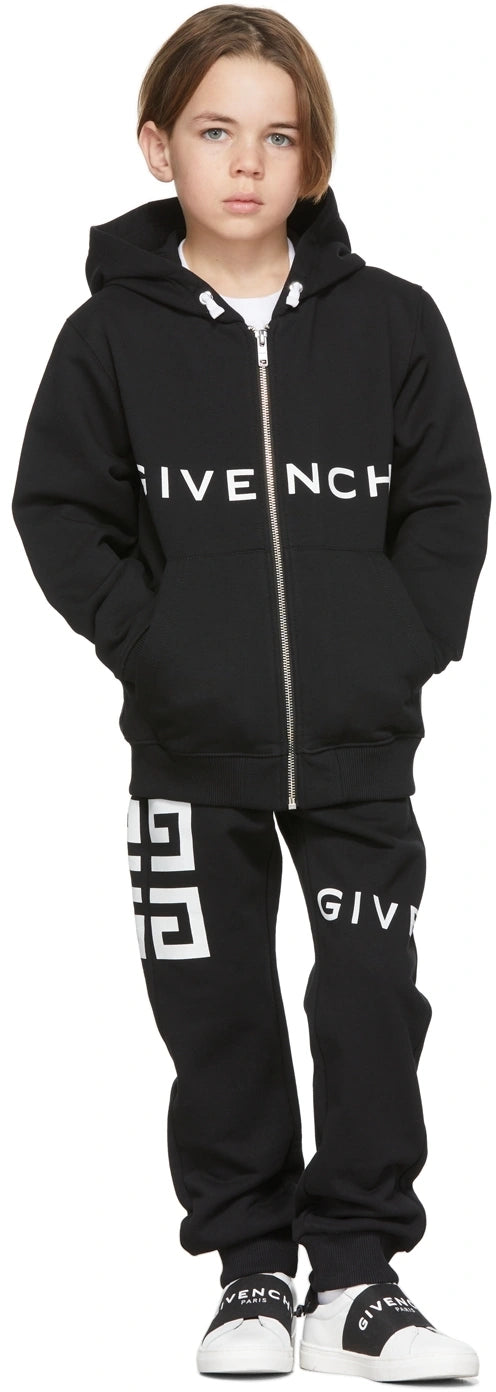 GIVENCHY KIDS BLACK LOGO ZIP-UP HOODIE