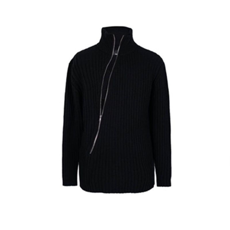 JUNLI BLACK SWEATER WITH DIAGONAL SHOULDER ZIPPER