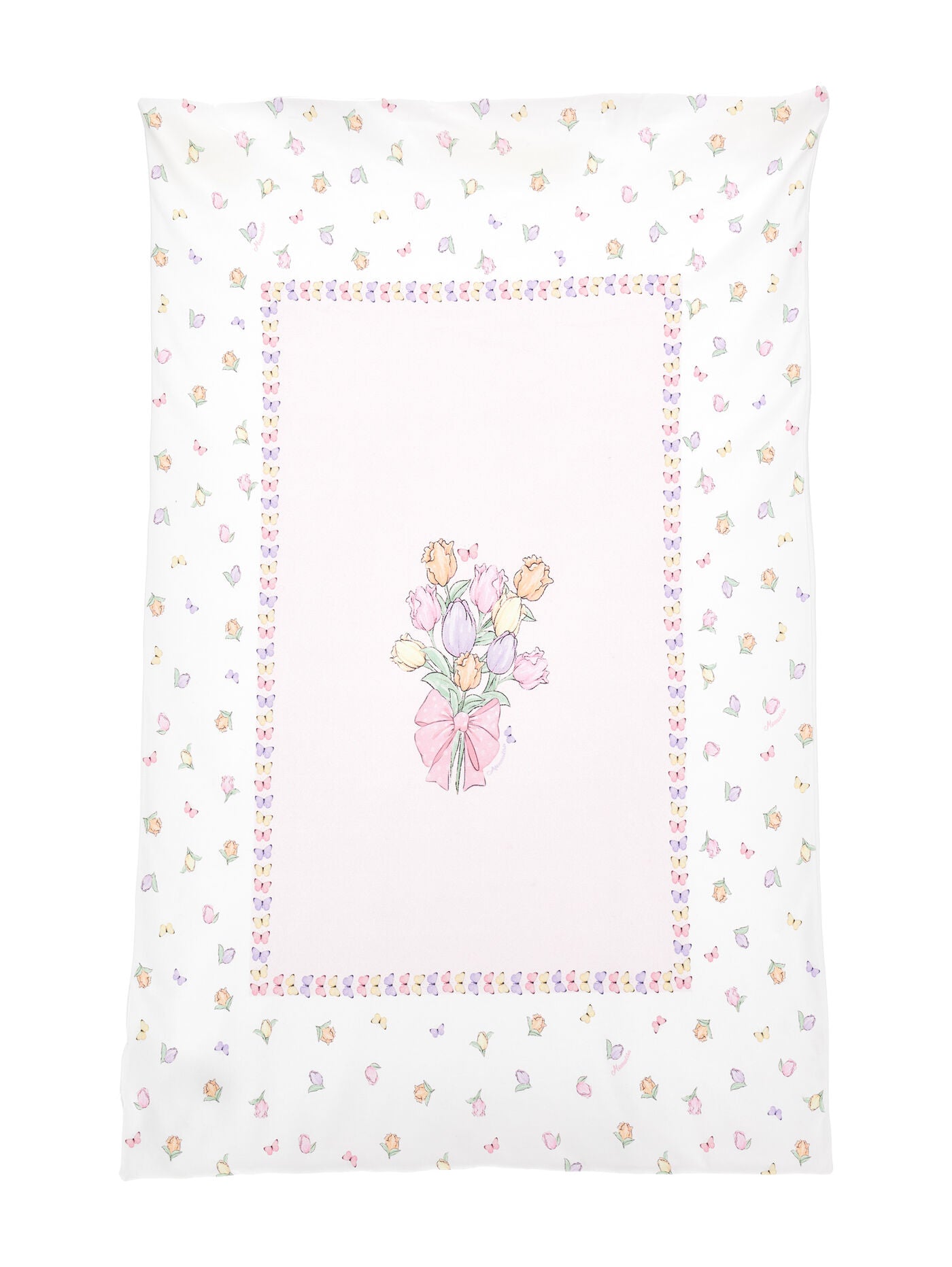 This blanket has an all-over frame print with a beautiful bouquet of tulips in the centre