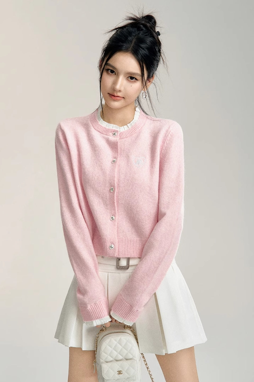 MACYMCCOY LACE PATCHWORK KNITTED CARDIGAN