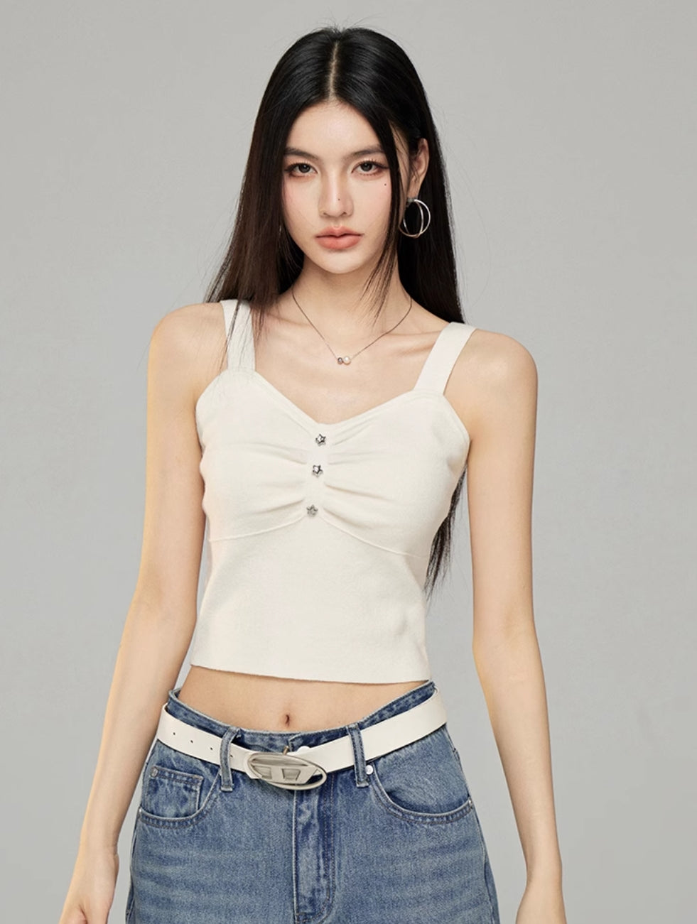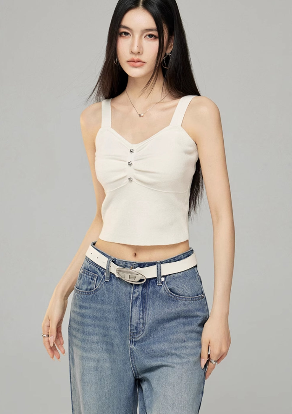 MACYMCCOY V-NECK RAW EDGE SLIM KNIT CARDIGAN TOP WHITE