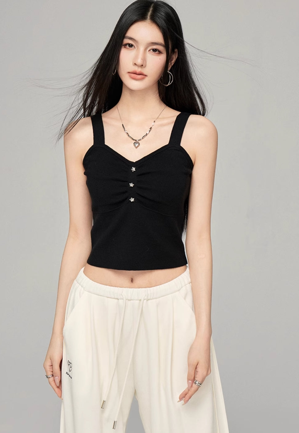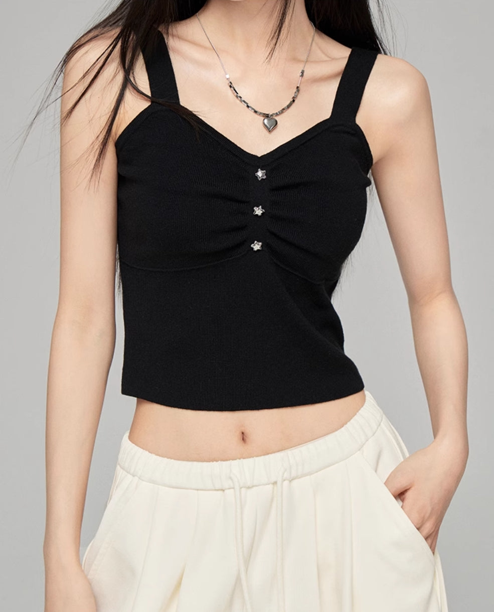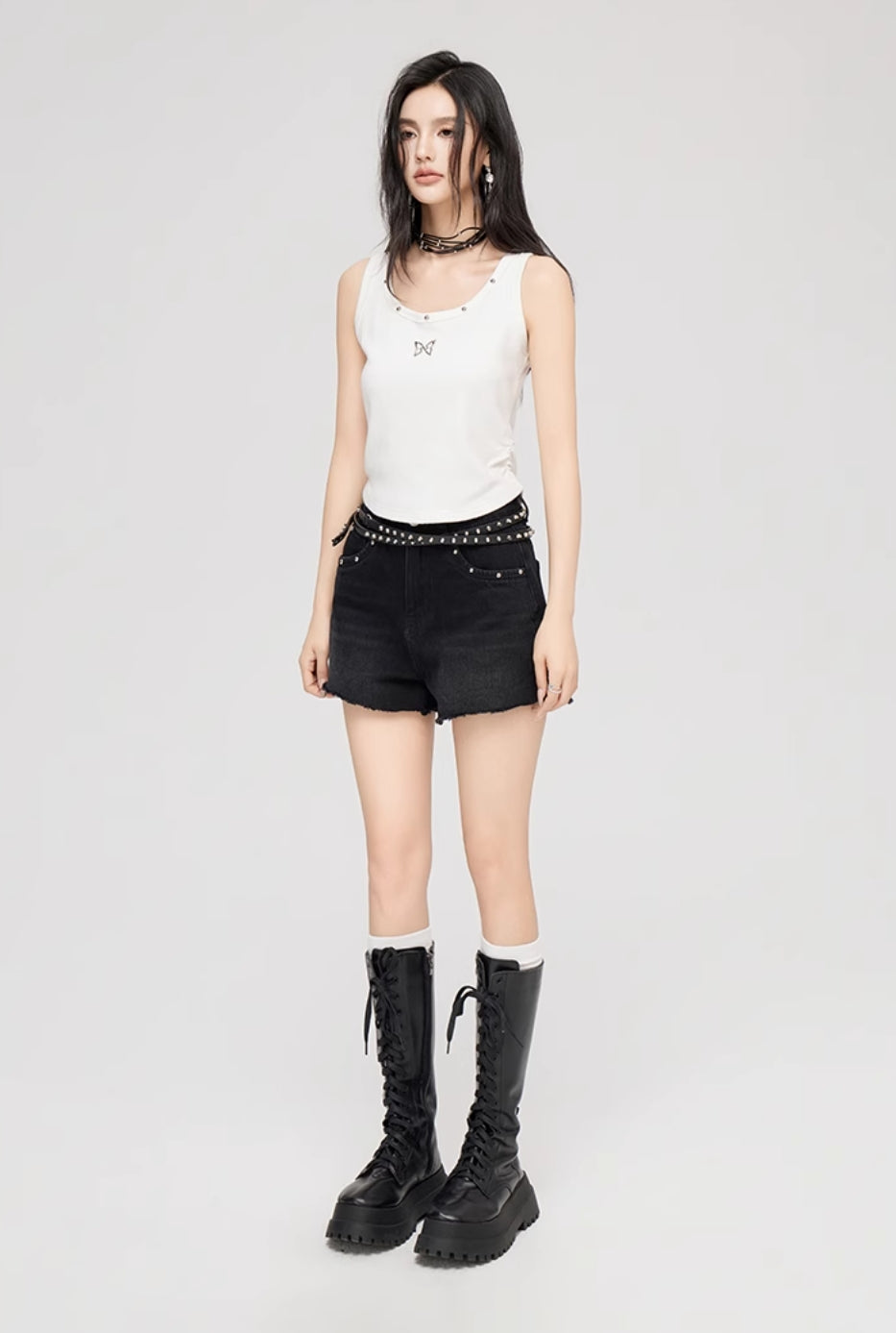 MACYMCCOY FAUX MINK RIVET SLIM KNIT TOP BLACK