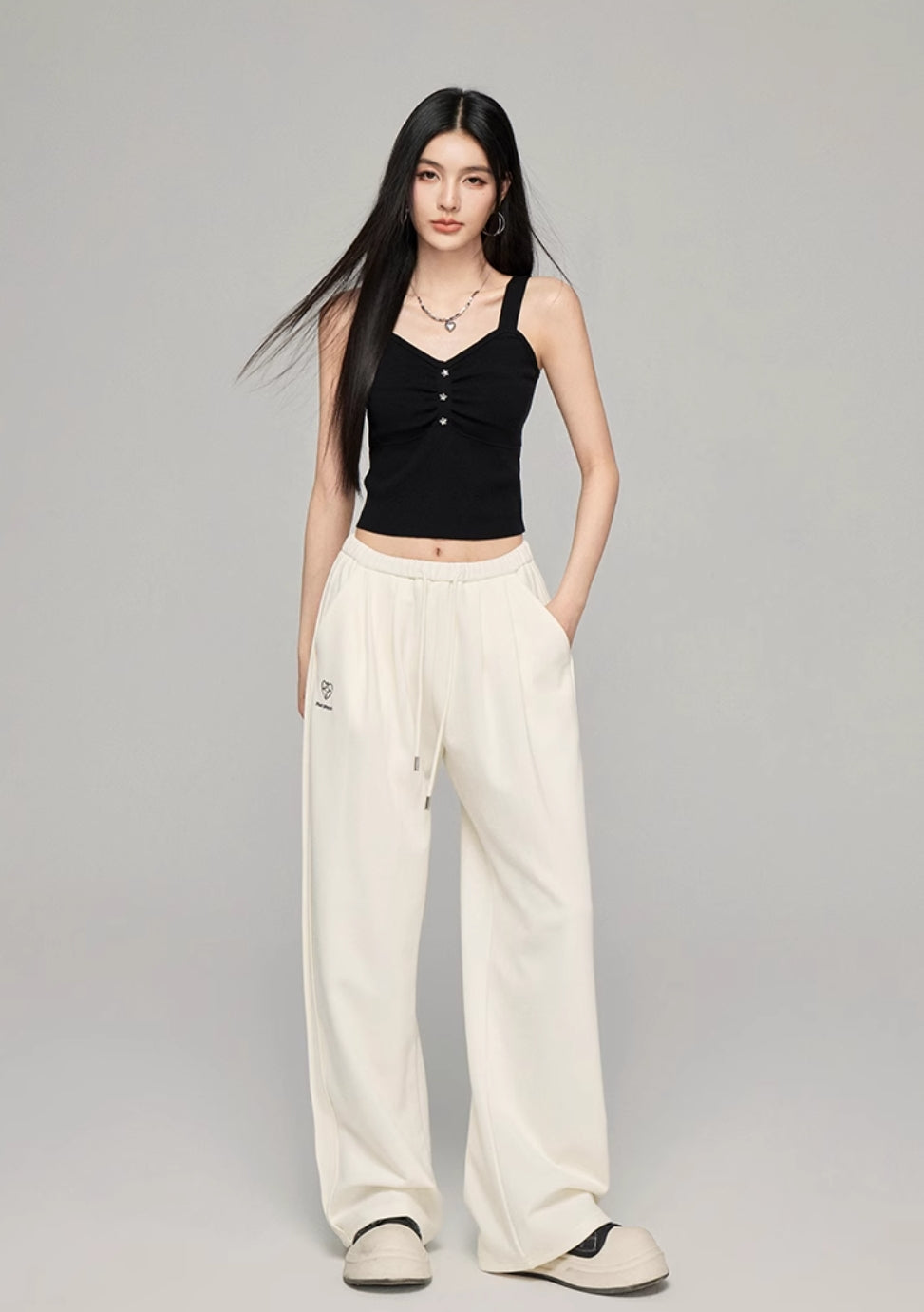 MACYMCCOY COLOR BLOCKED V-NECK KNIT CARDIGAN CASUAL PANTS SET BLACK