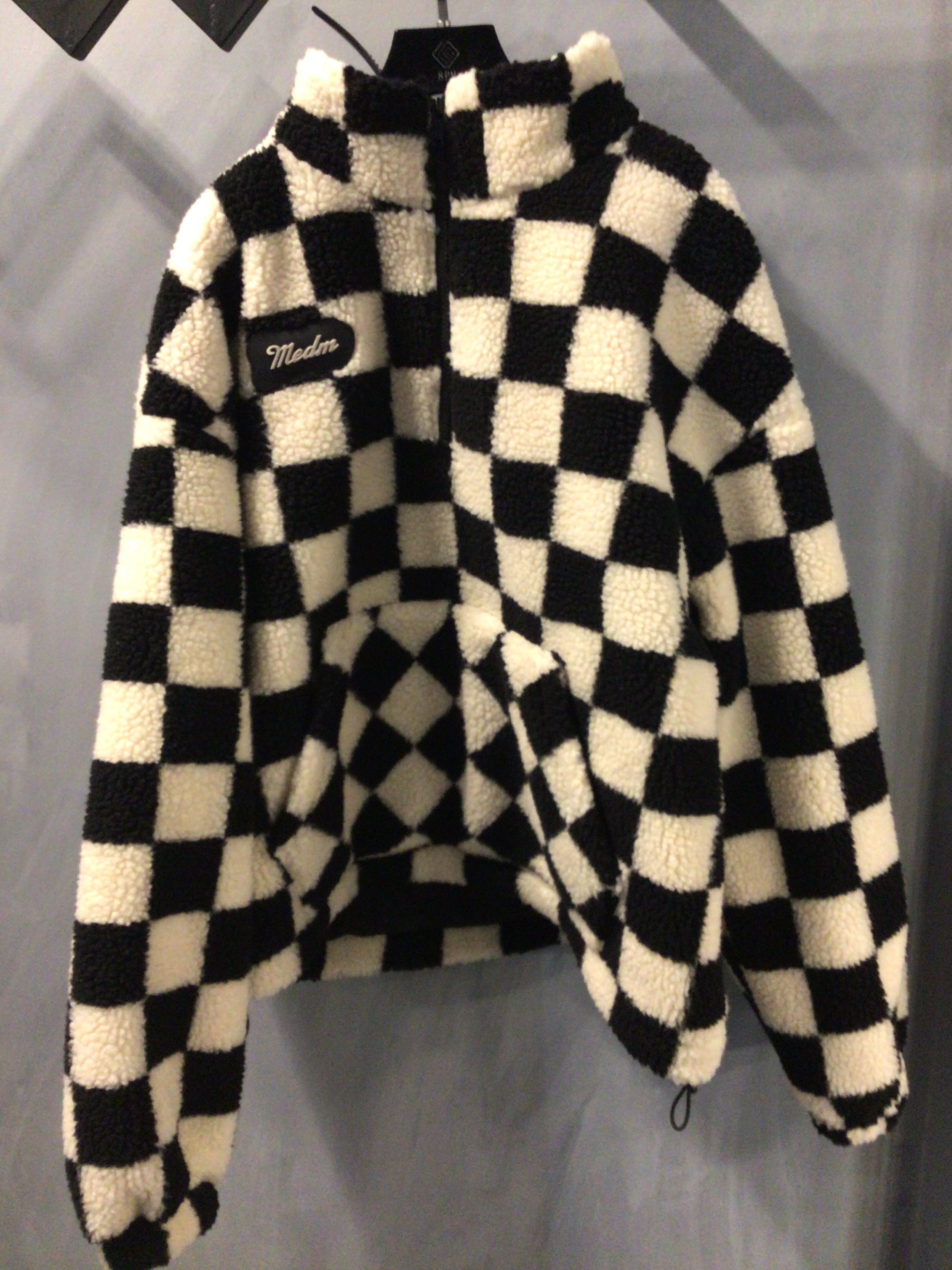 CHECKERBOARD LAMB WOOL COAT