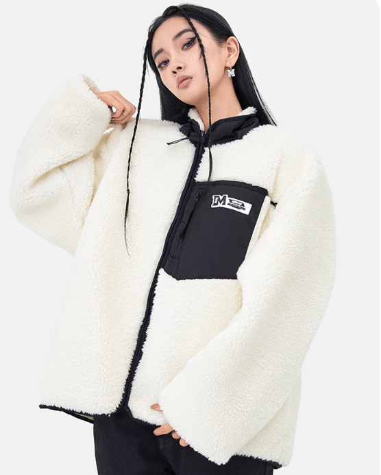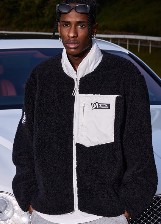 MEDM COTTON PATCHWORK IMITATION LAMB WOOL JACKET