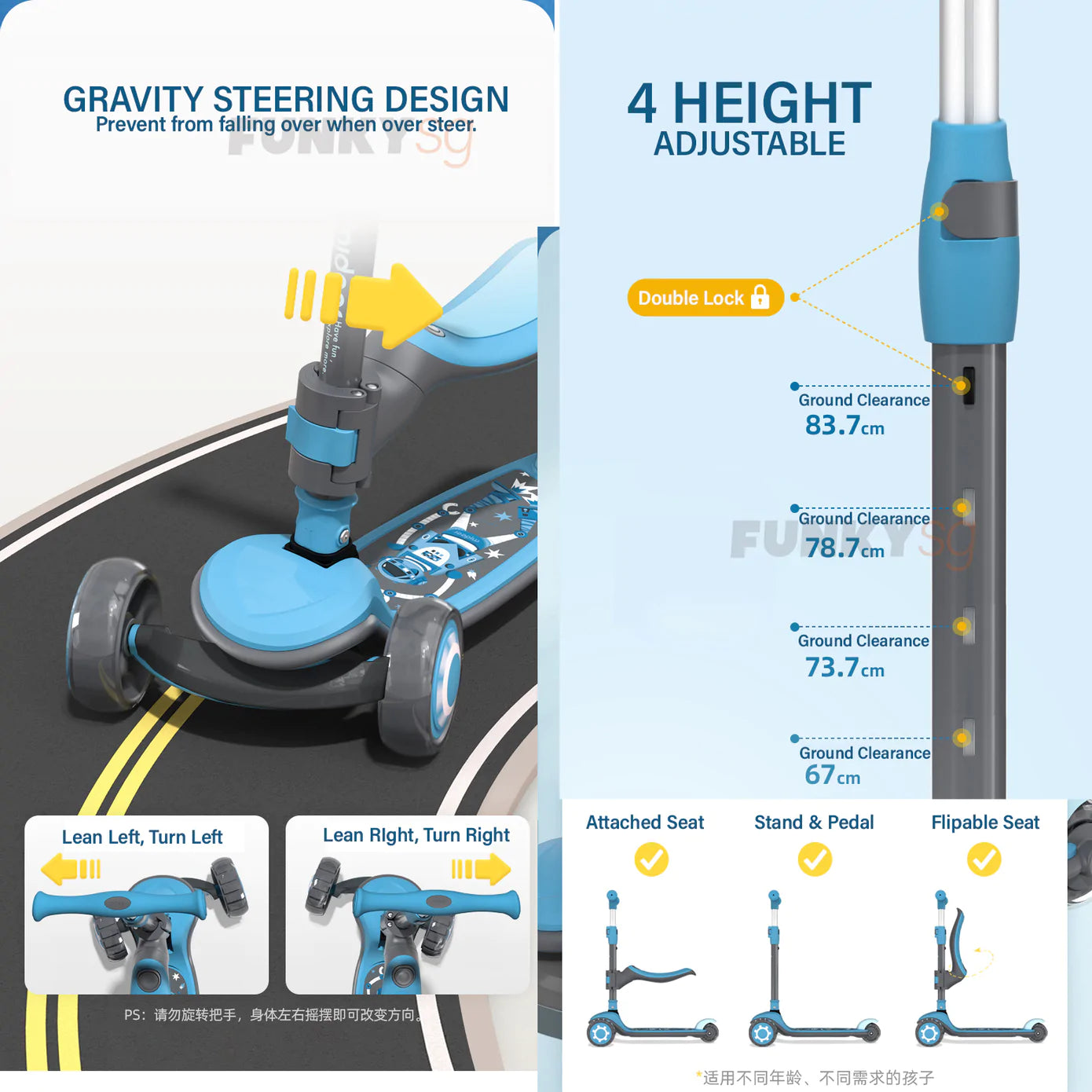 MIDEER 3 WHEELED LED LIGHTS SCOOTER FOR KIDS - 2 IN 1 SIT/STAND WITH FLIP-OUT SEAT