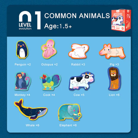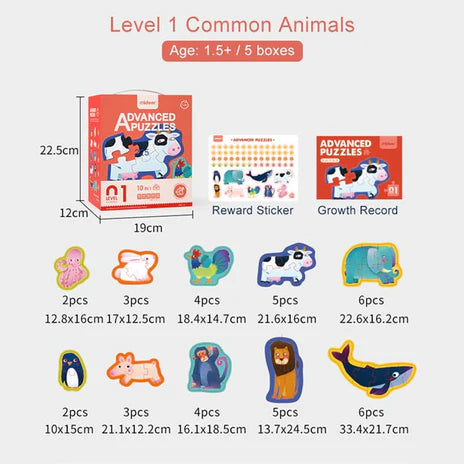 MIDEER ADVANCED PROGRESSIVE PUZZLE LEVEL 1 ANIMALS