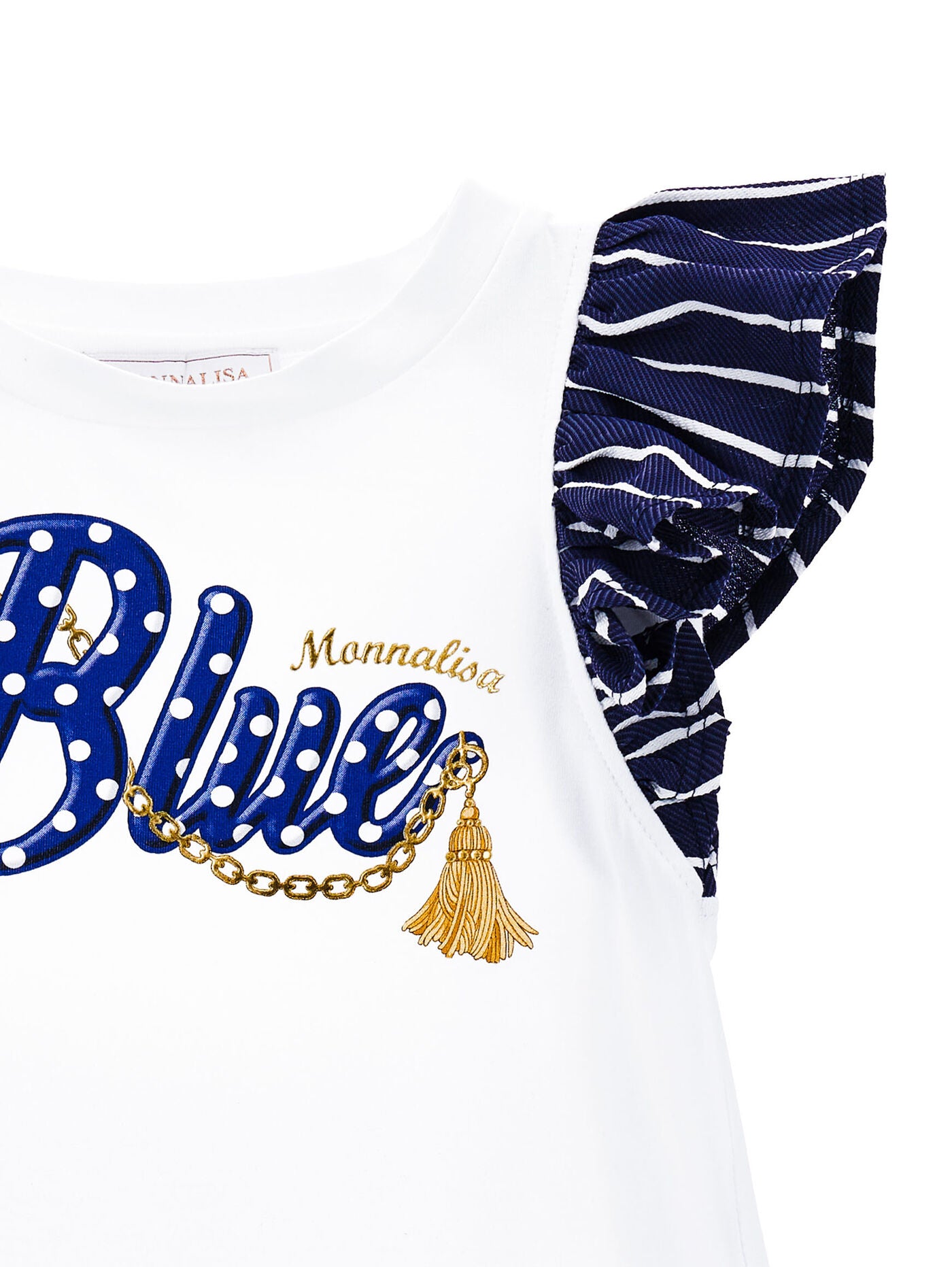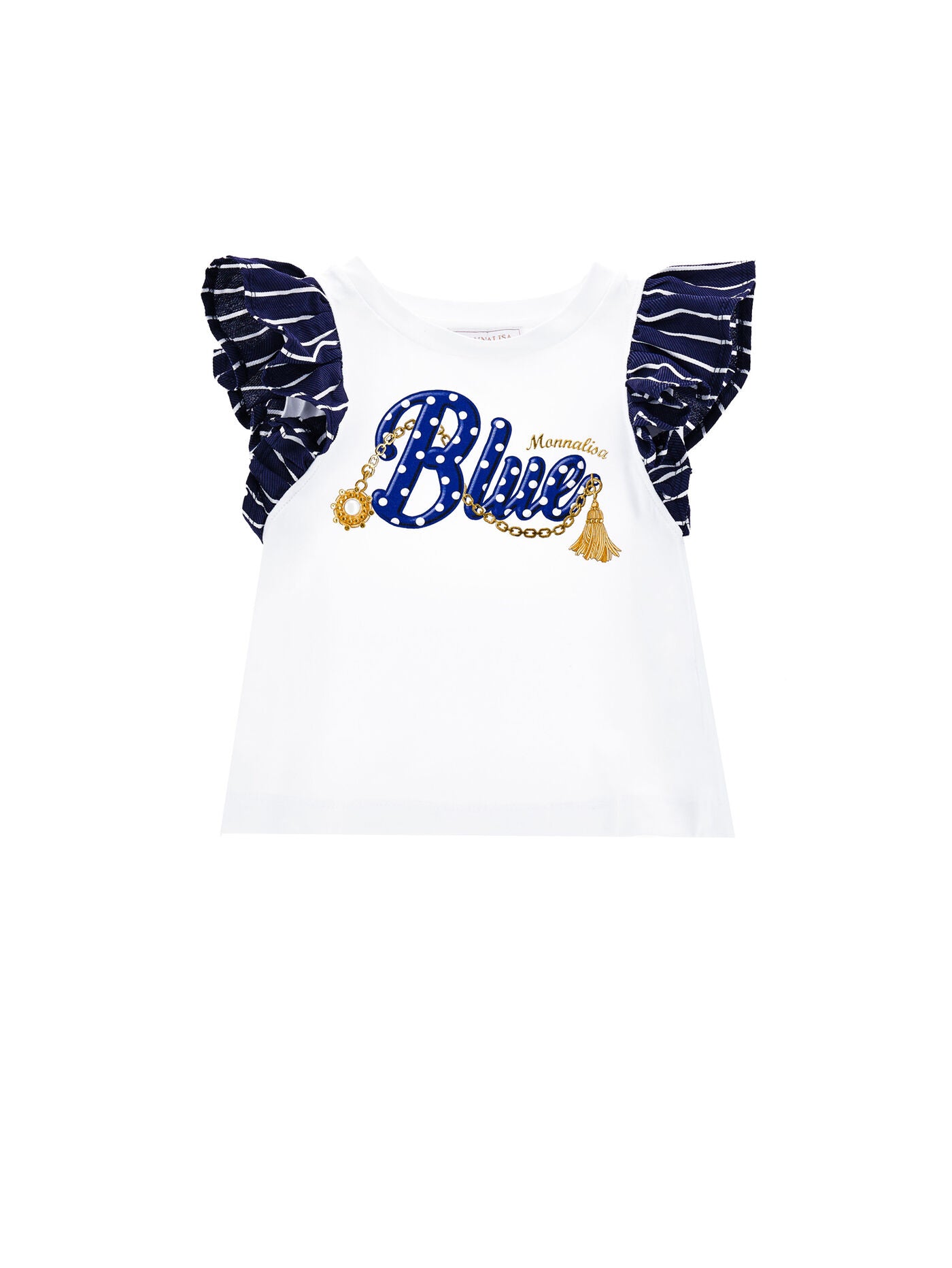 MONNALISA JERSEY T-SHIRT WITH SAILOR STRIPE SLEEVES