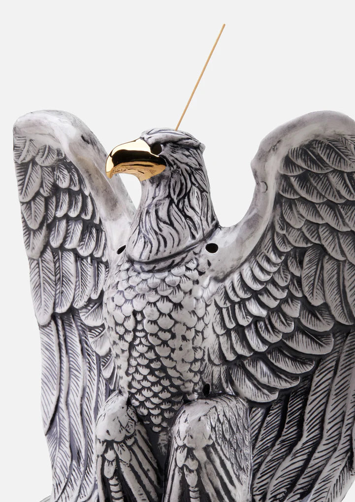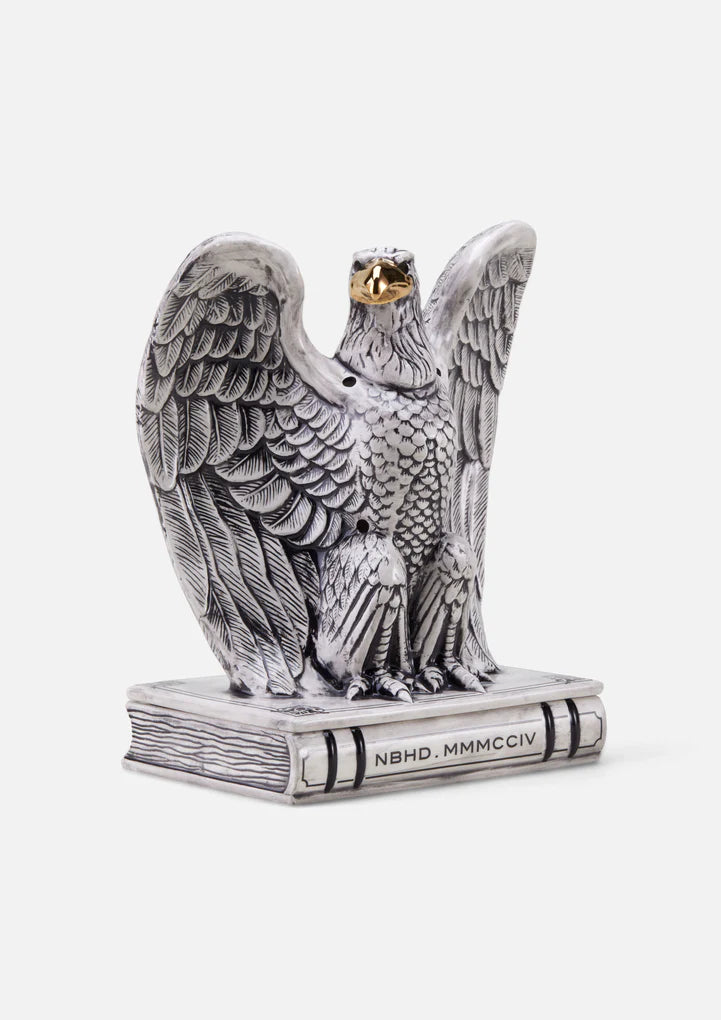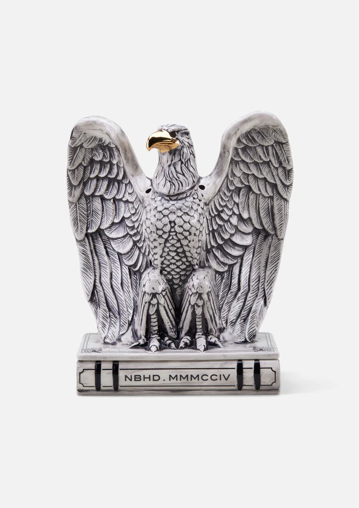 A perennial Neighborhood favourite, the Booze Eagle Incense Chamber is part of NBHD's pottery series, inspired by Japanese ceramic exports during the period they were under U.S occupation after WW2. Constructed from Chinese Kaolin clay, the material used in traditional Chinese pottery, it's designed to house almost any style of incense and holes in the proud eagle will allow the smoke to drift out menacingly.