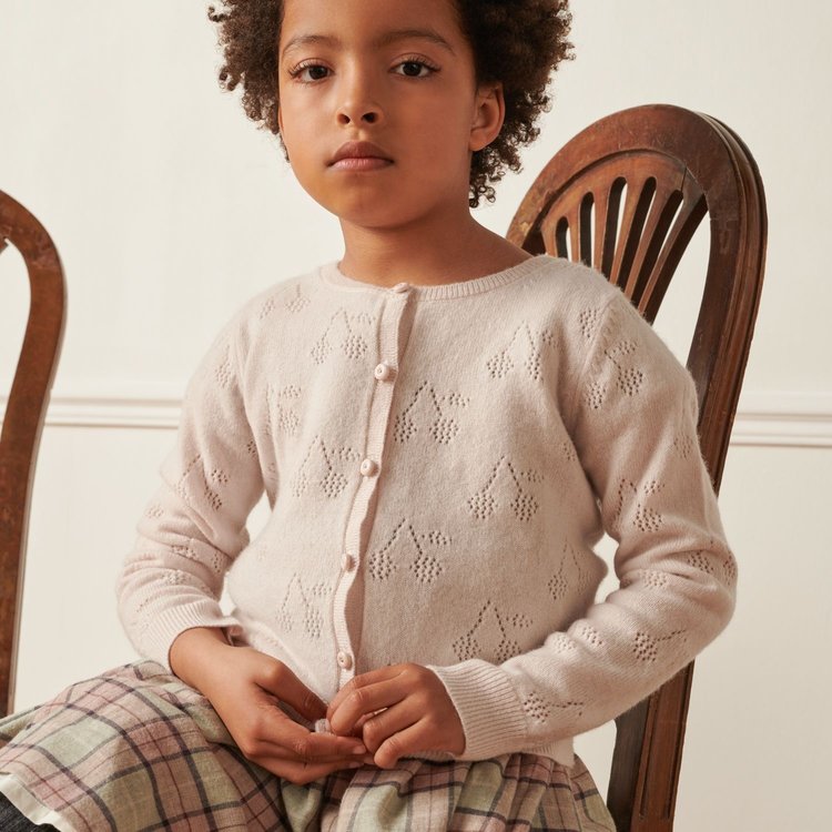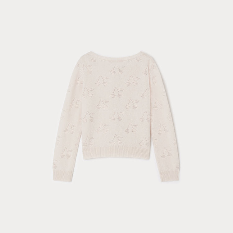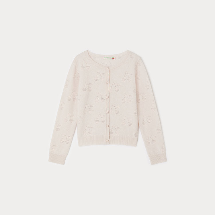 This soft, warm Thindra cardigan for girls is one of the Bonpoint House's most iconic designs. The cherry logo appears in an all-over openwork motif.
