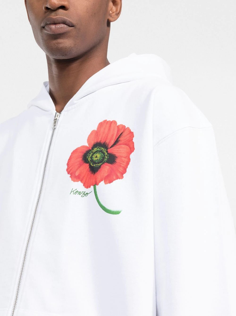 KENZO POPPY GRAPHIC-PRINT HOODIE WHITE