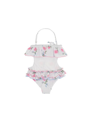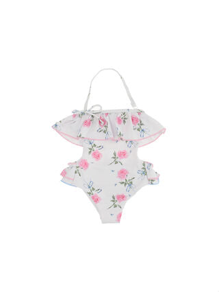 - Fun one-piece swimsuit for little ones, with a delightful print of roses and butterflies