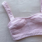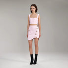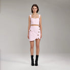 SELF-PORTRAIT LIGHT PINK DENIM CROPPED TOP