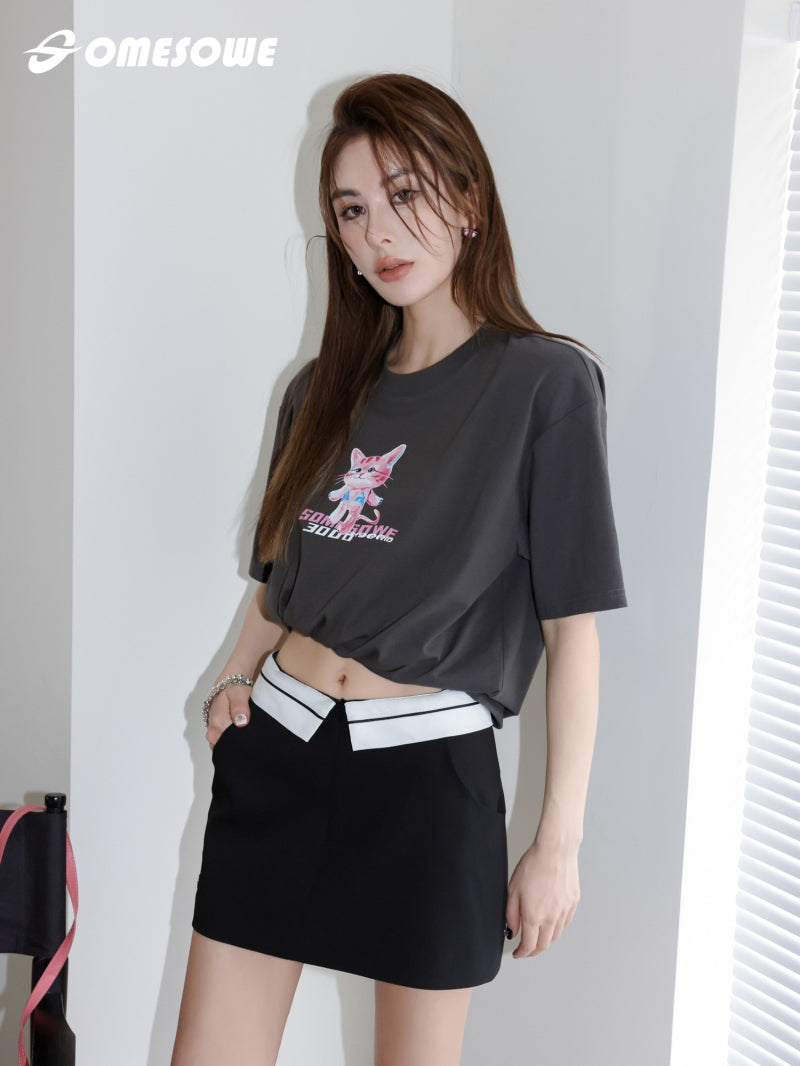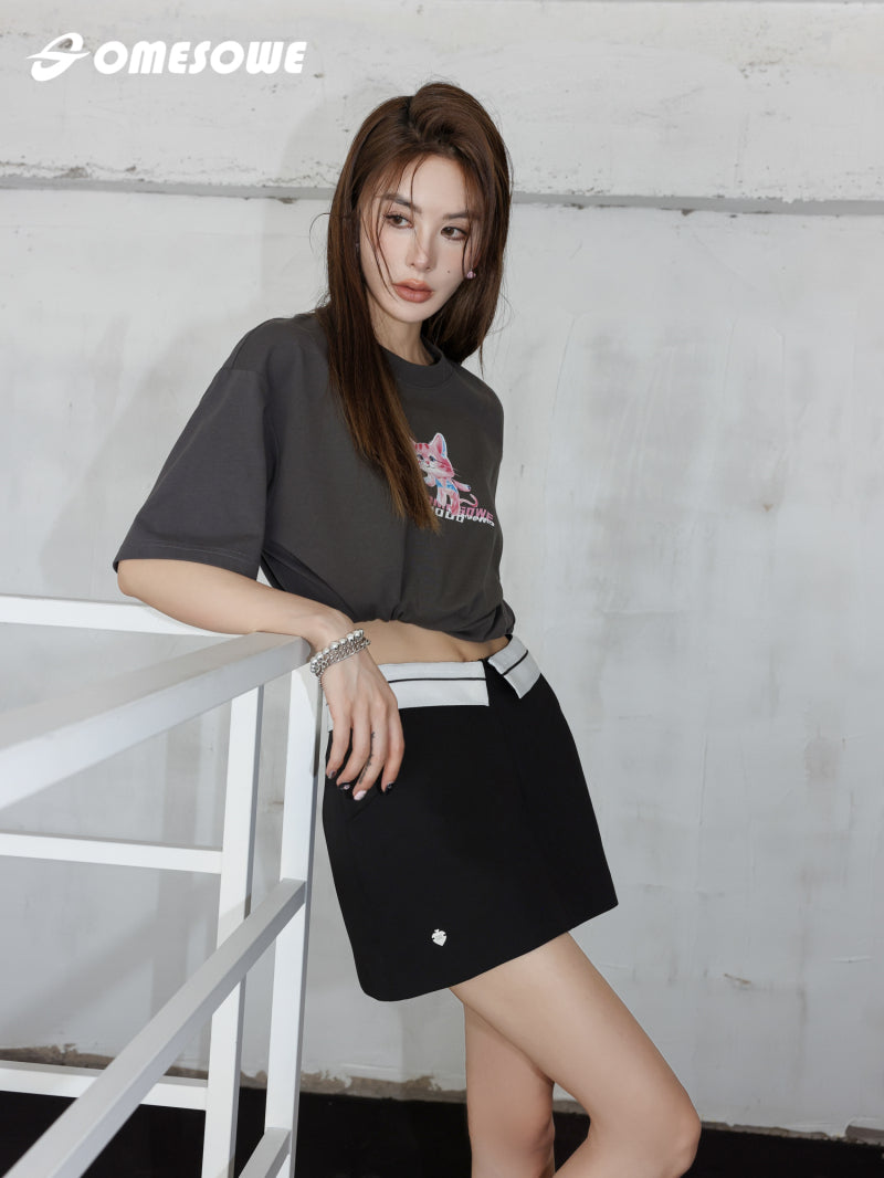 SOMESOWE FLIP WAIST STITCHING SUIT SKIRT