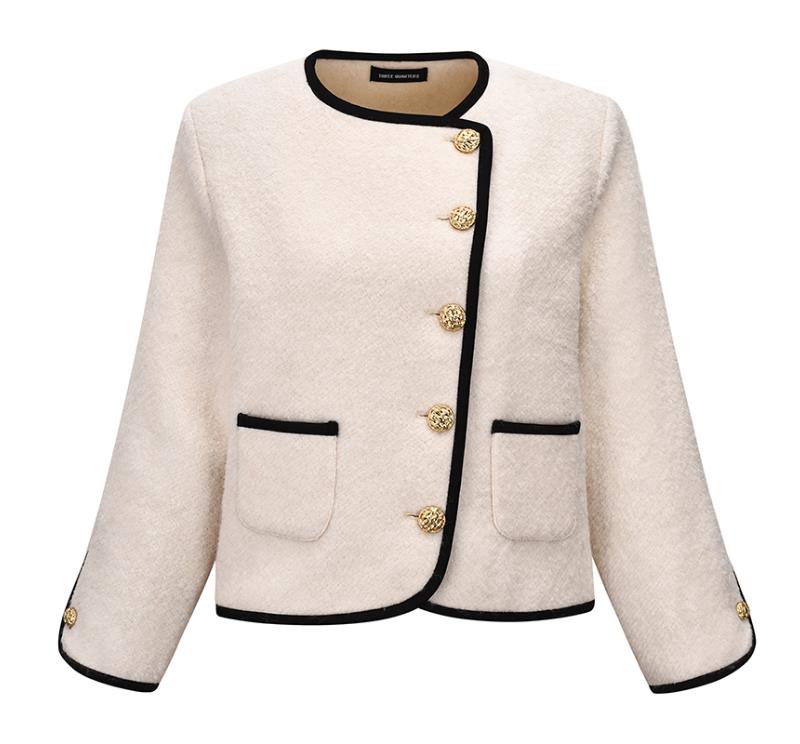 THREE QUARTERS WOOL SLANT FRONT SMALL FRAGRANT WIND COAT
