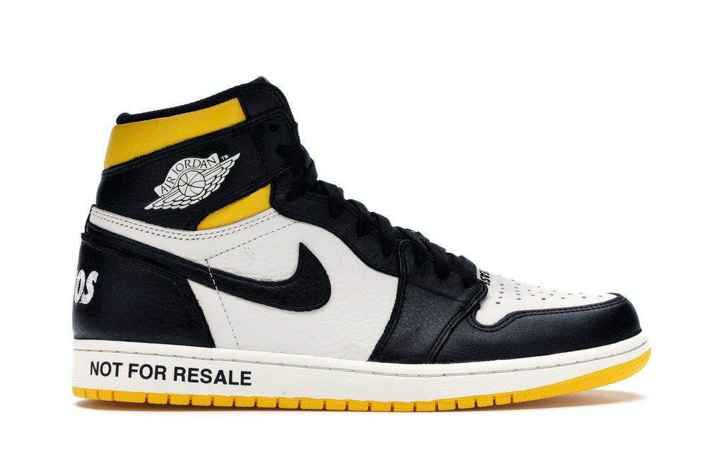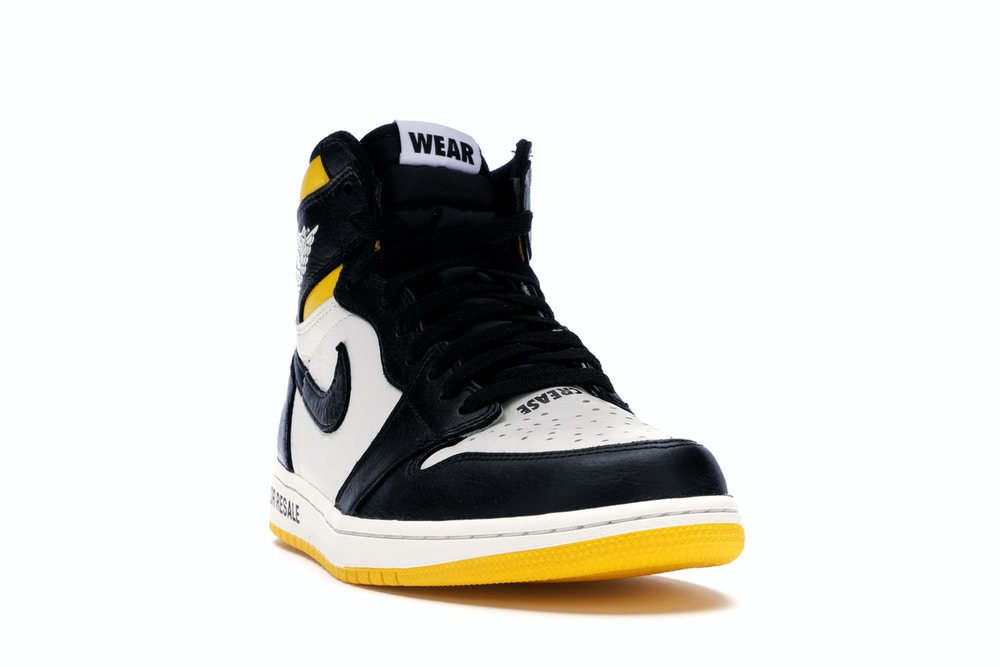Please try not to take any corny photos while rocking the Jordan 1 Retro High “Not for Resale” Varsity Maize. This Jordan 1 comes with a white leather upper plus black accents, black Nike “Swoosh”, white midsole, and maize sole. These sneakers released in November 2018 and retailed for $160. Enhance that Jordan 1 rotation, go against the instructions and buy these now on 8PM