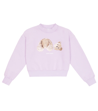 PALM ANGELS KIDS BEAR PRINT COTTON SWEATSHIRT IN PURPLE
