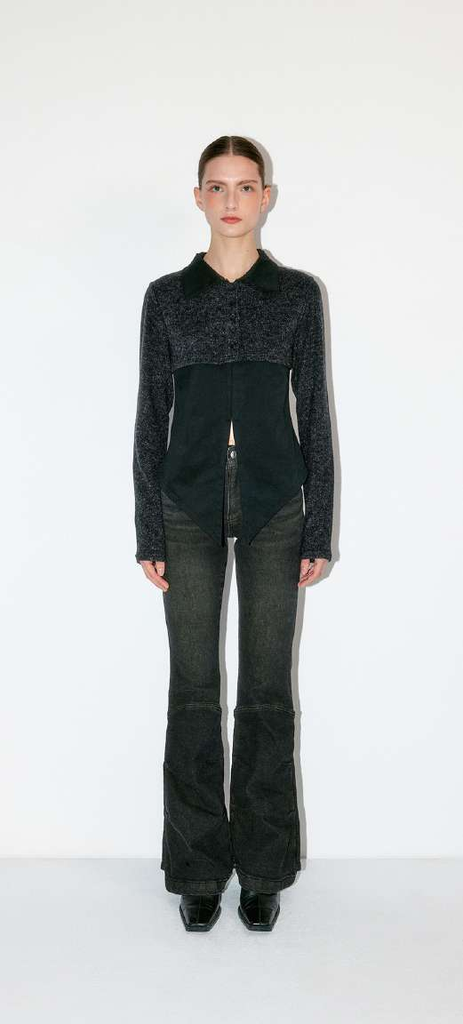 SOMESOWE FAKE TWO STRIPED PATCHWORK CREWNECK