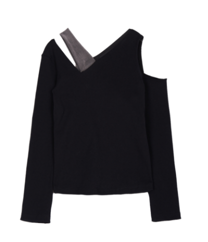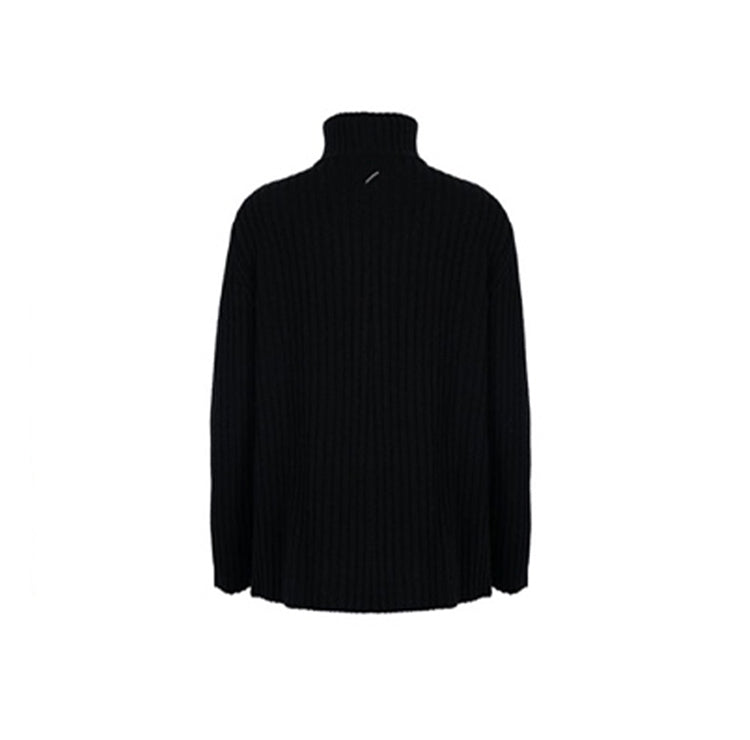 JUNLI BLACK SWEATER WITH DIAGONAL SHOULDER ZIPPER