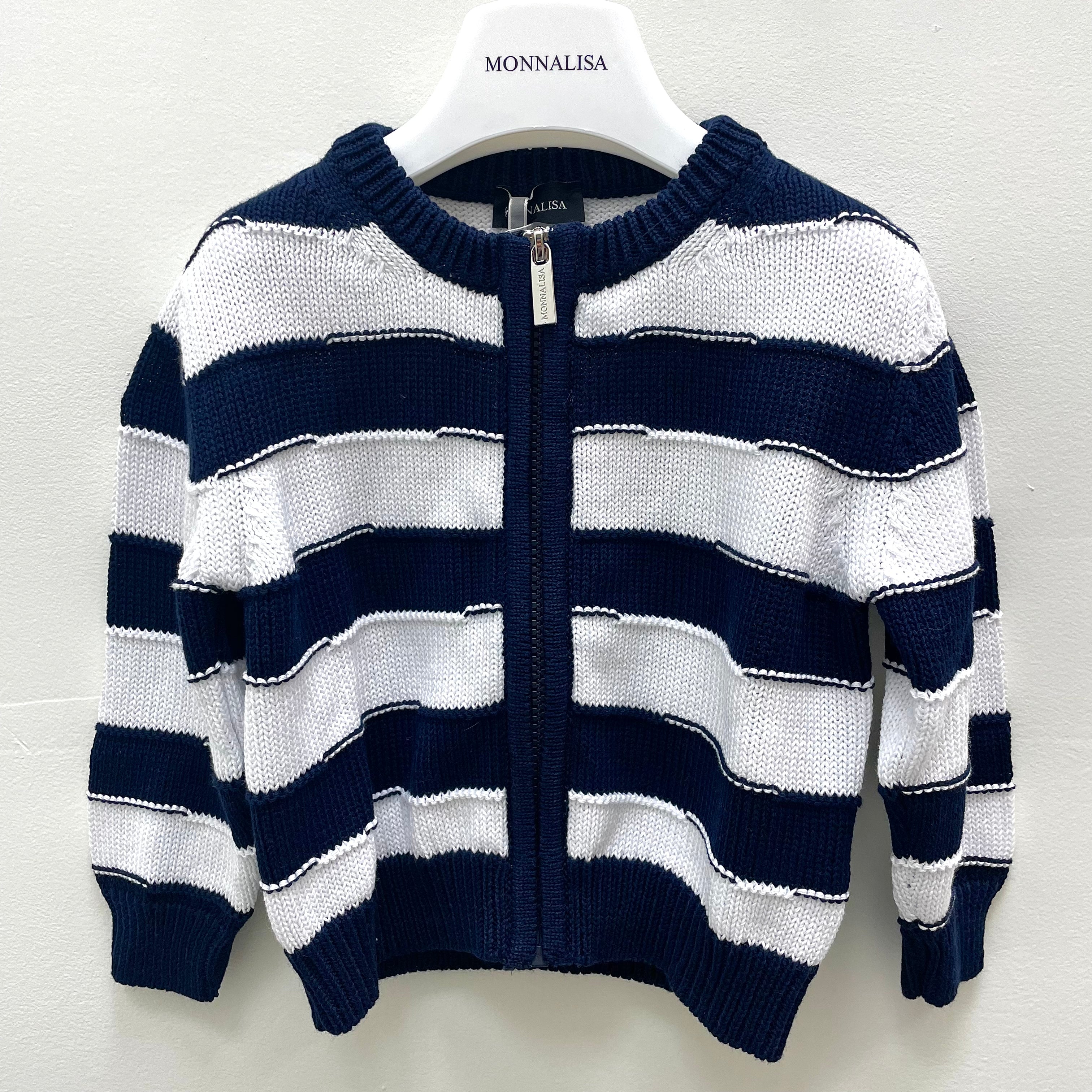 MONNALISA JERSEY T-SHIRT WITH SAILOR STRIPE SLEEVES