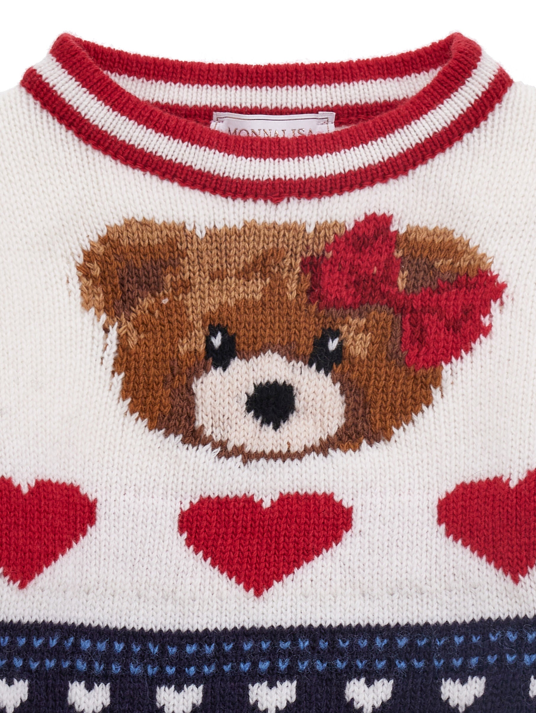 MONNALISA MERINO TEDDY AND HEARTS SWEATER
