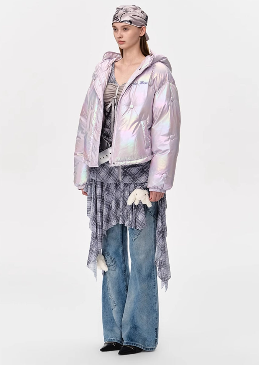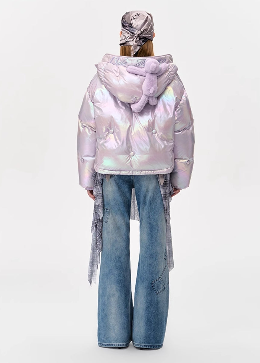 13DE MARZO BEAR BUTTON SILKY DOWN JACKET