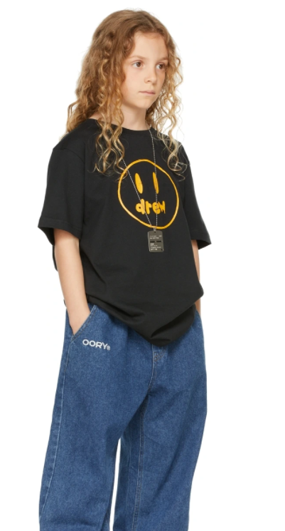 DREW HOUSE KIDS BLACK PAINTED MASCOT T-SHIRT