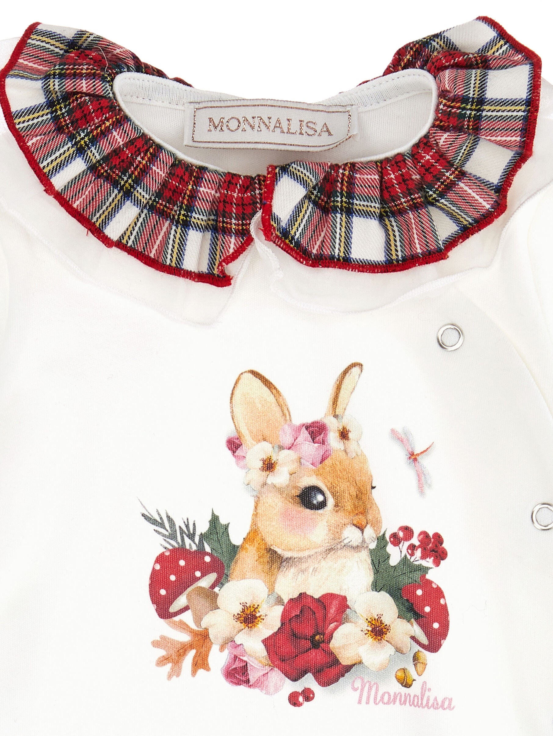 MONNALISA COTTON PLAYSUIT WITH TARTAN COLLAR