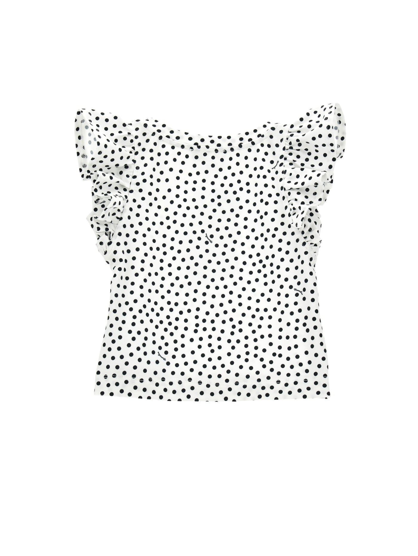 • polka dot fabric appliqués on the armholes