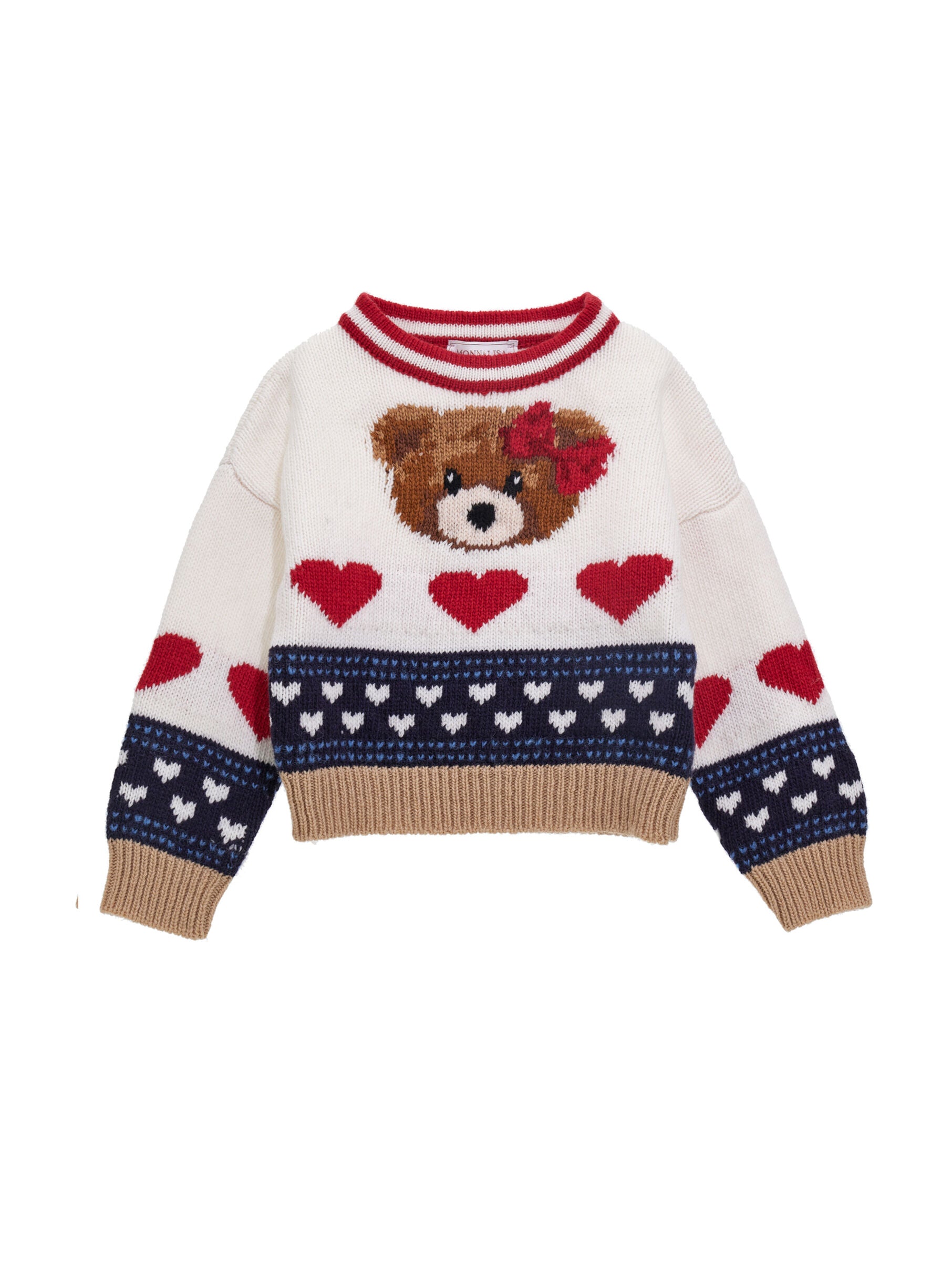 MONNALISA MERINO TEDDY AND HEARTS SWEATER