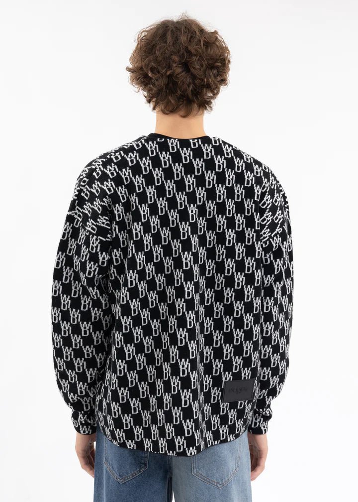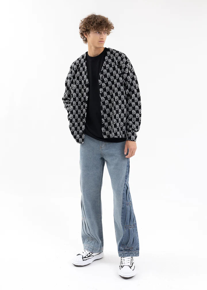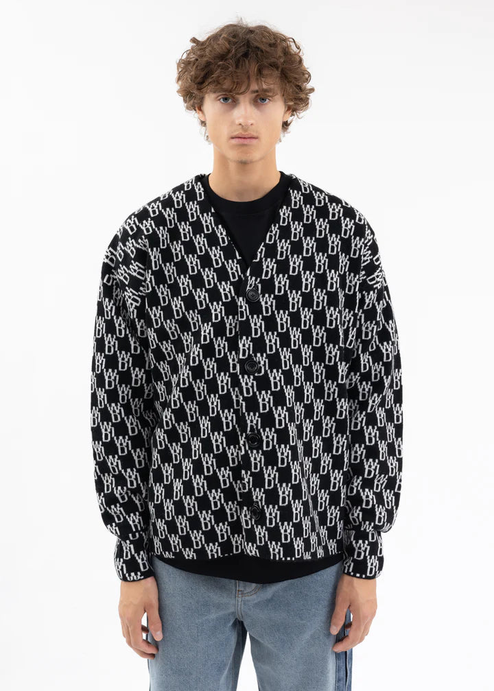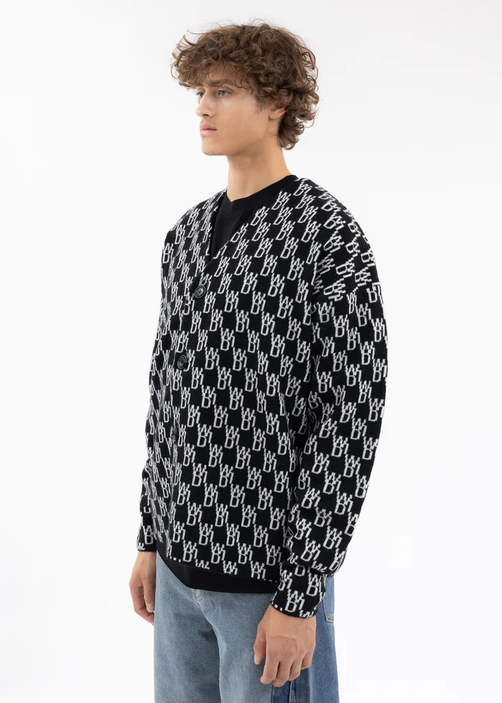 WE11DONE BLACK WD1 GRAPHIC KNIT CARDIGAN