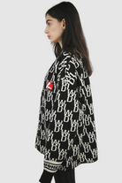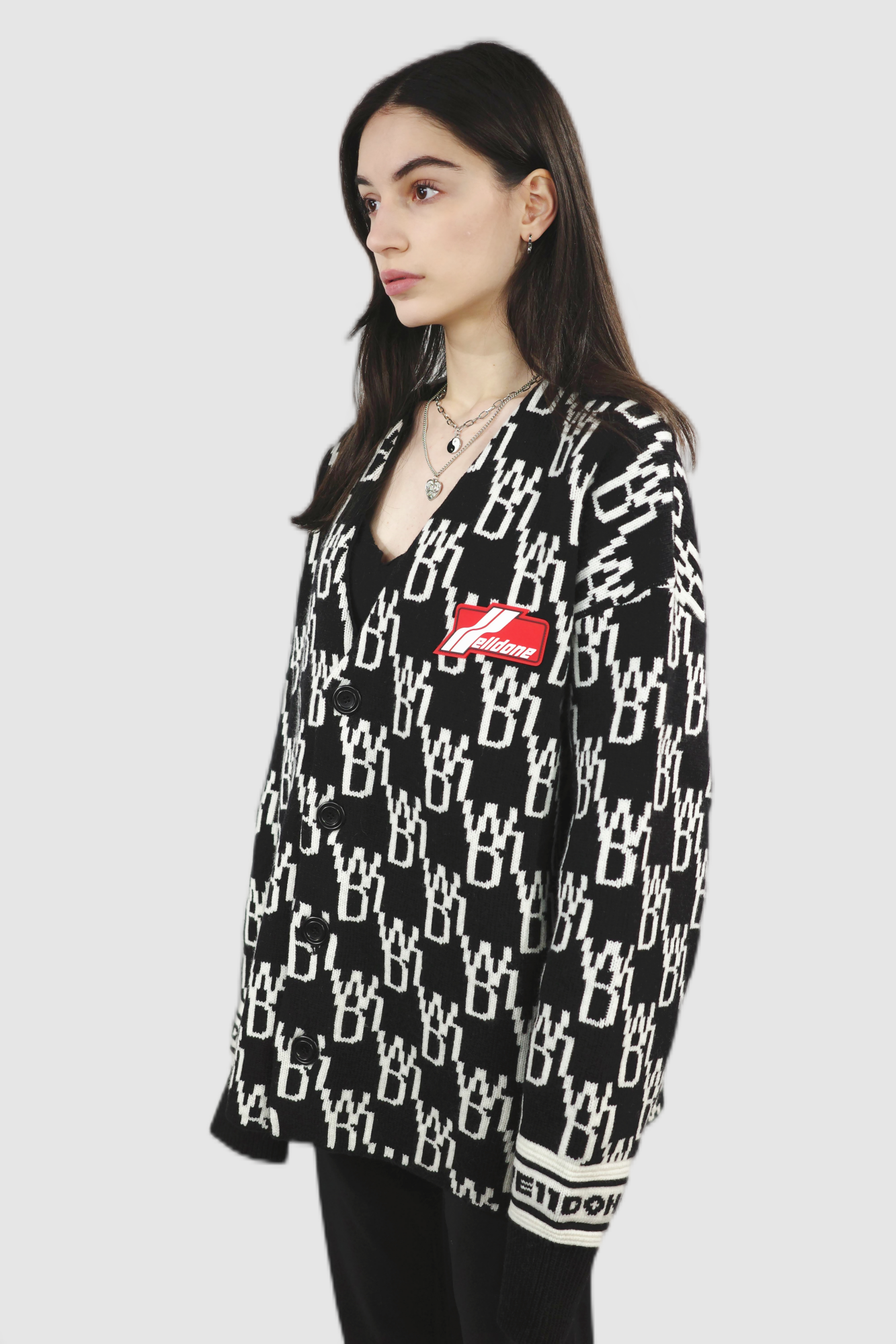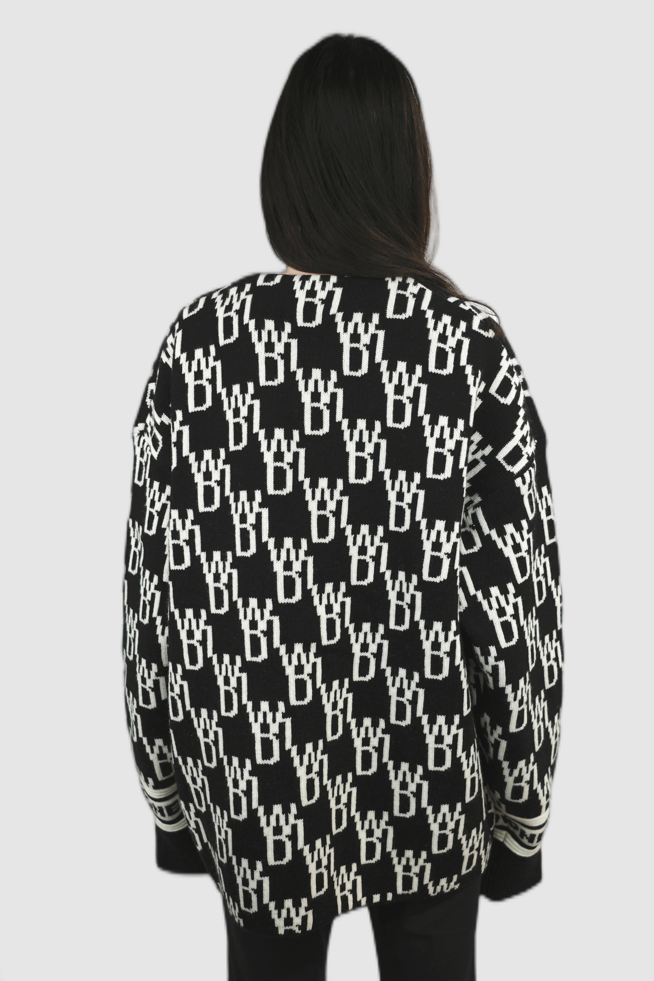 Knit wool and nylon-blend cardigan. Jacquard knit logo pattern throughout.