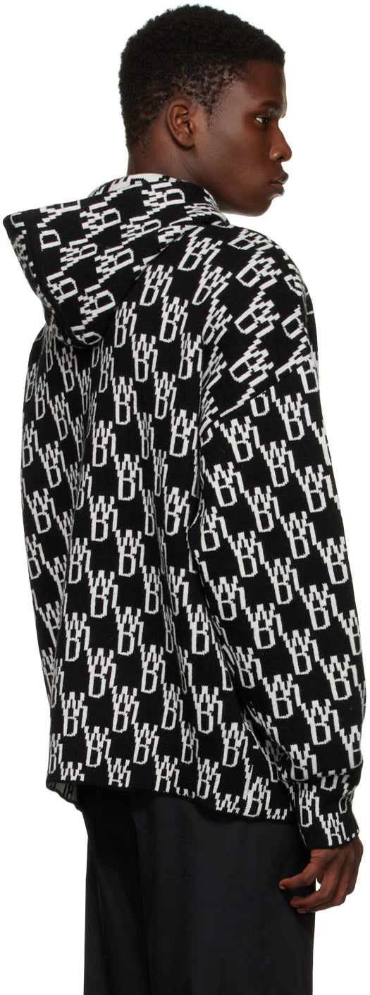 WE11DONE BLACK WD1 GRAPHIC KNIT CARDIGAN