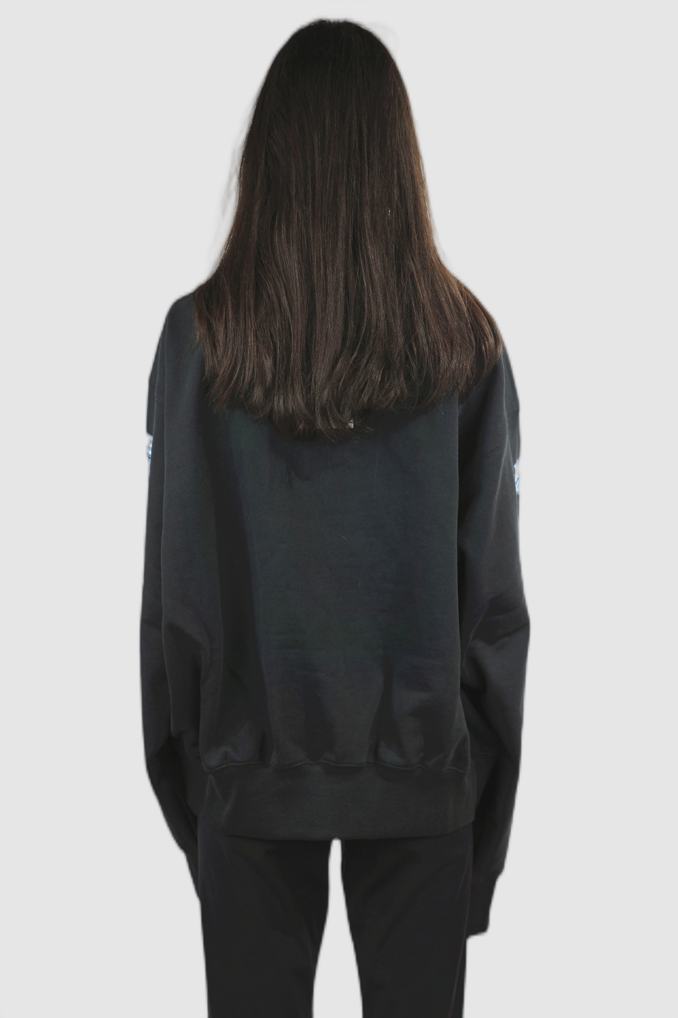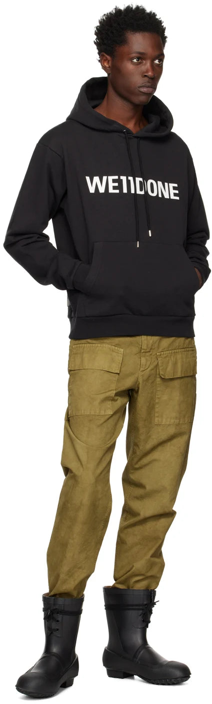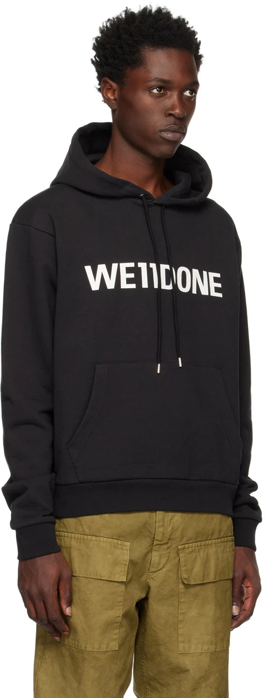 WE11DONE BLACK BASIC LOGO FITTED HOODIE