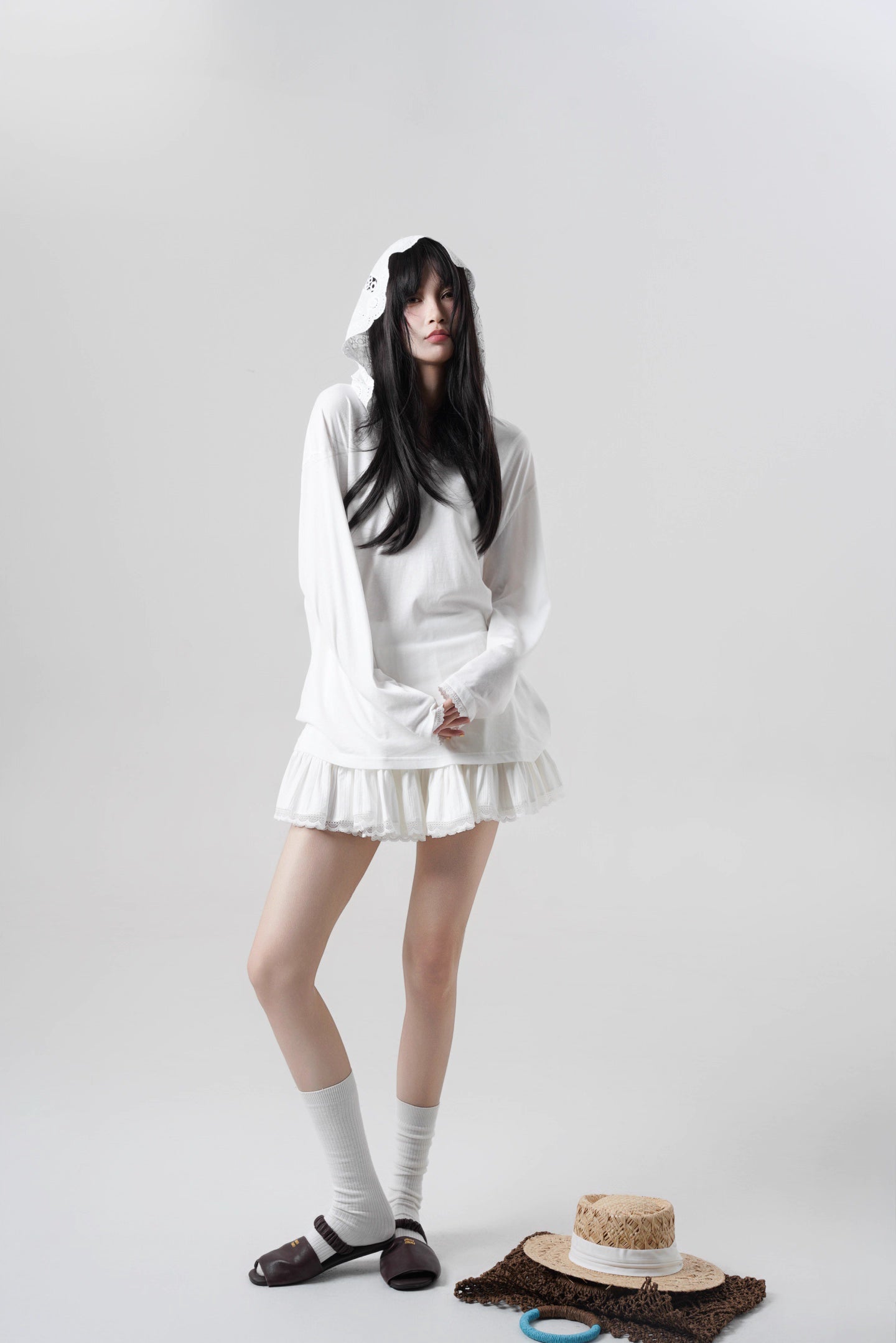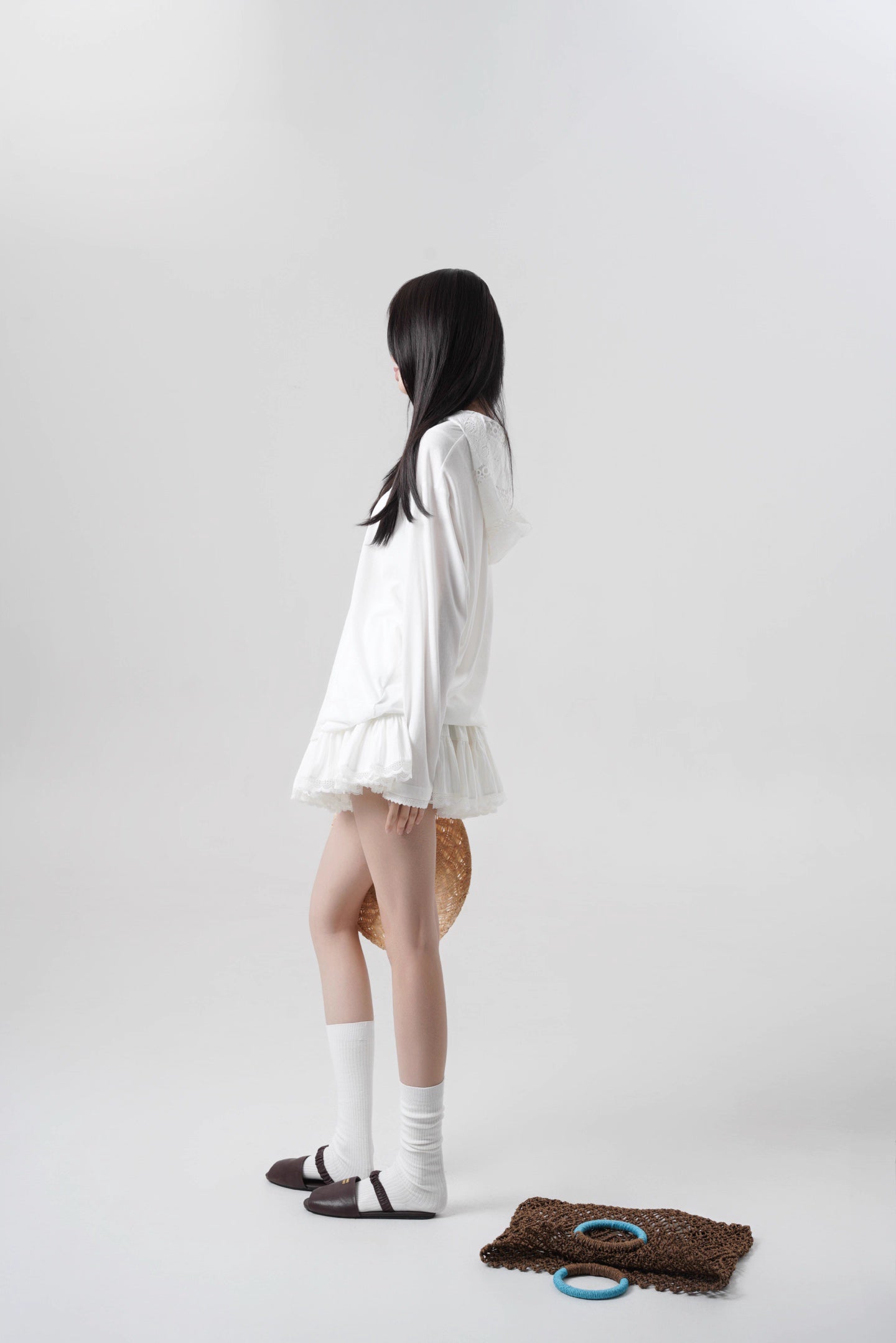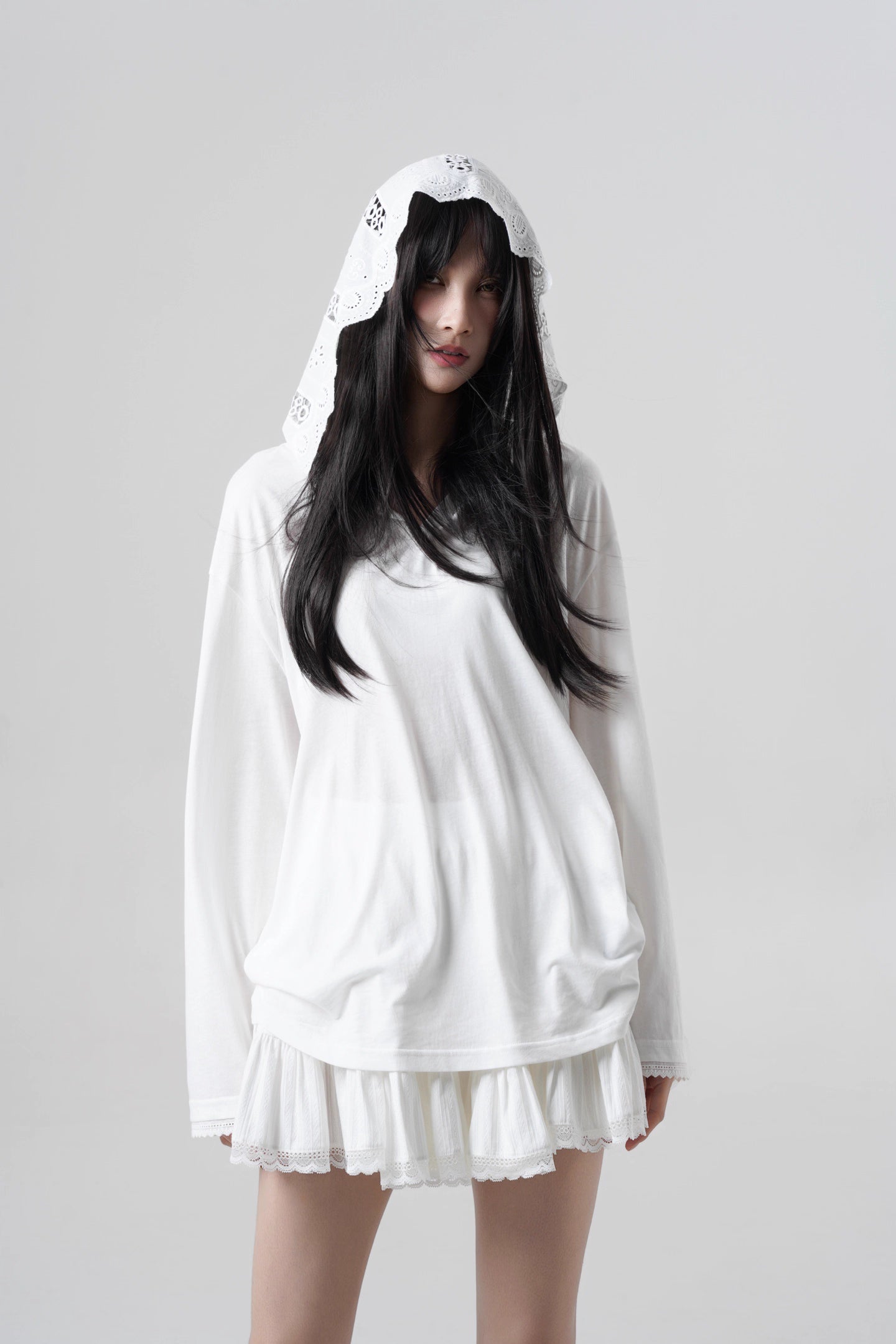 Mto Quinn V-neck lace hooded sun-protective shirt