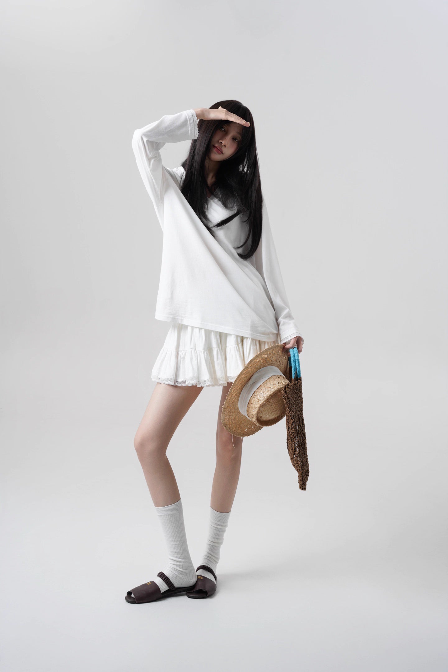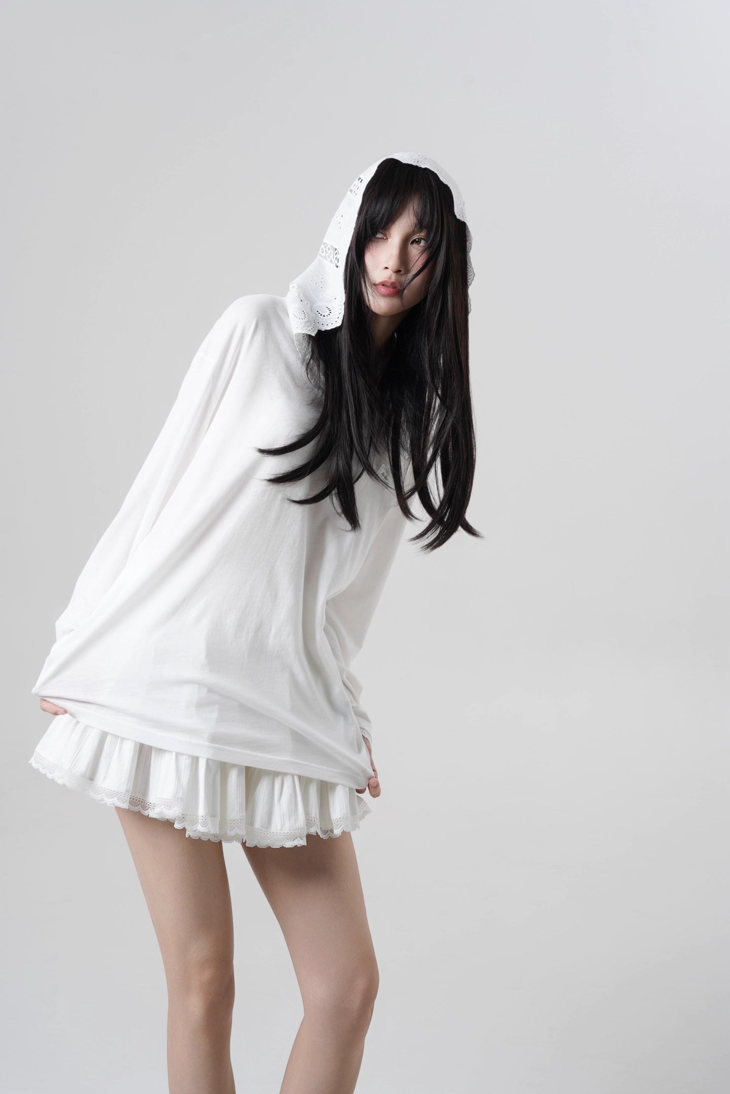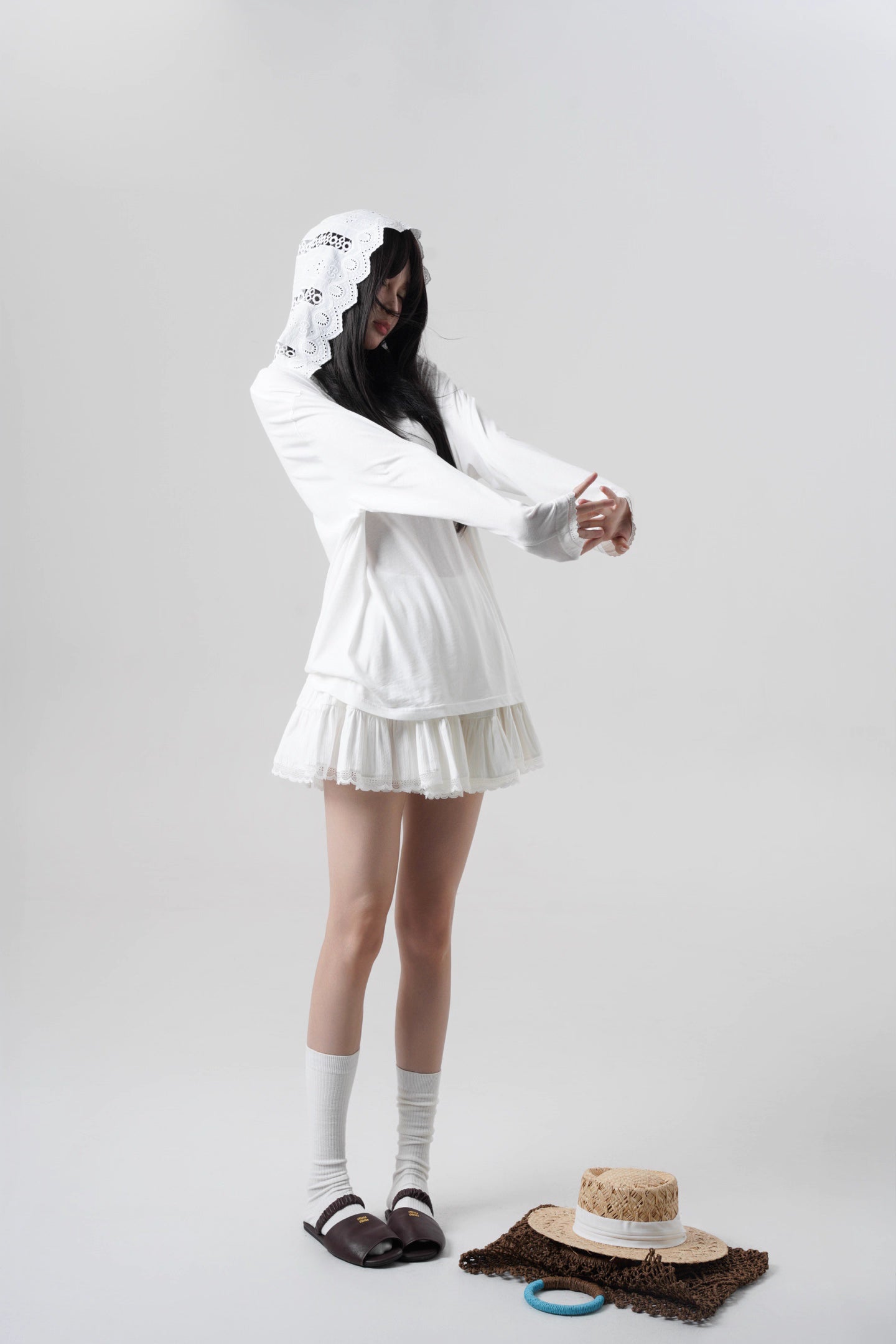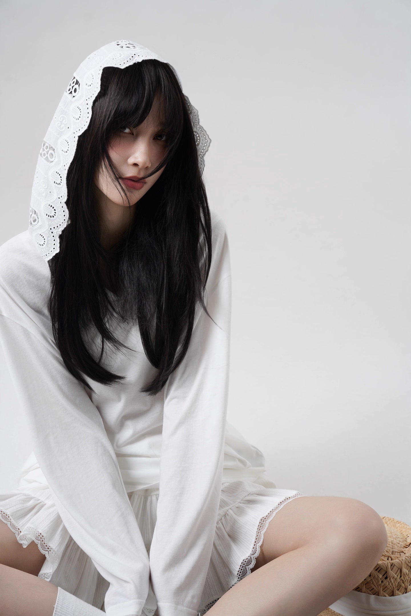 Mto Quinn V-neck lace hooded sun-protective shirt