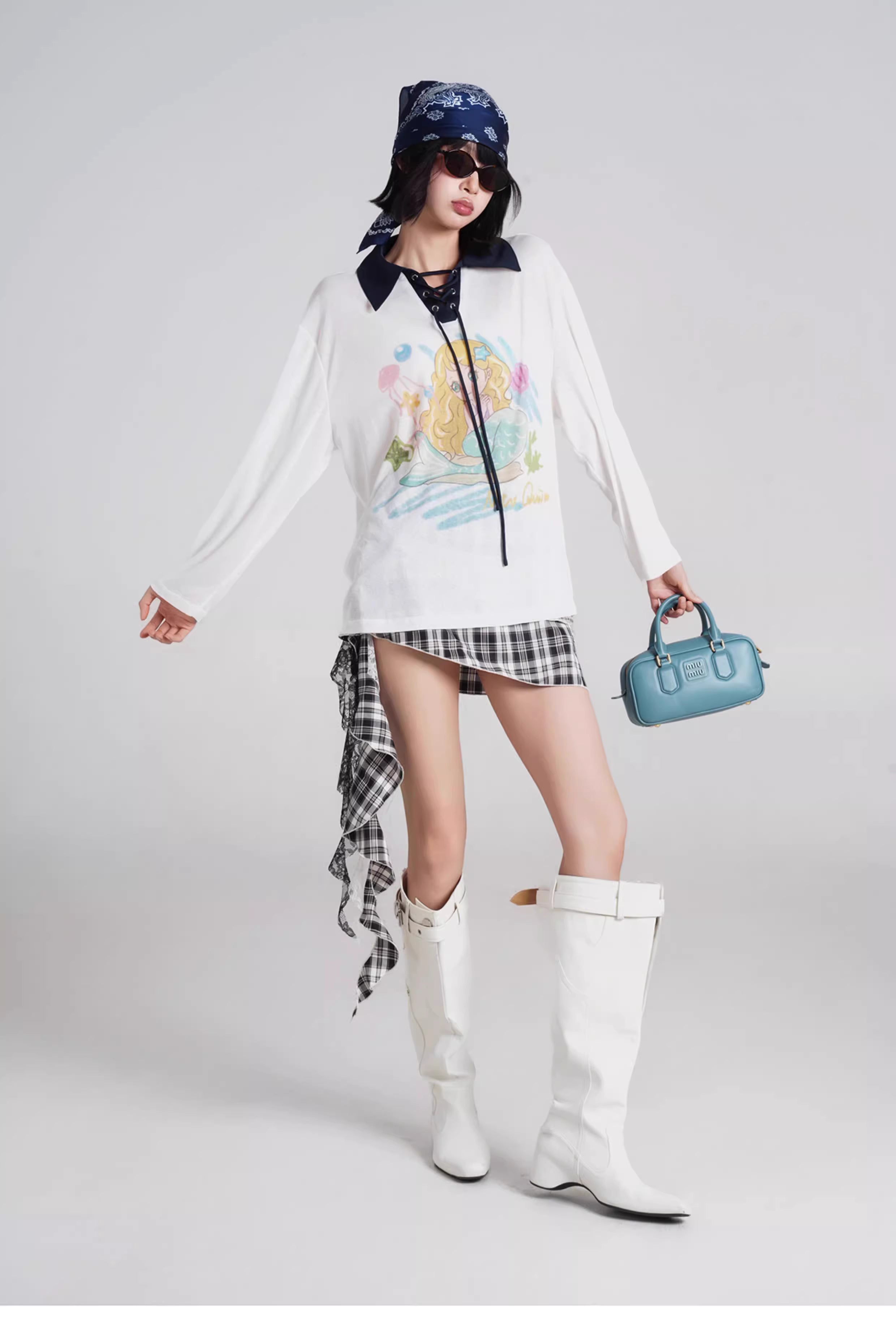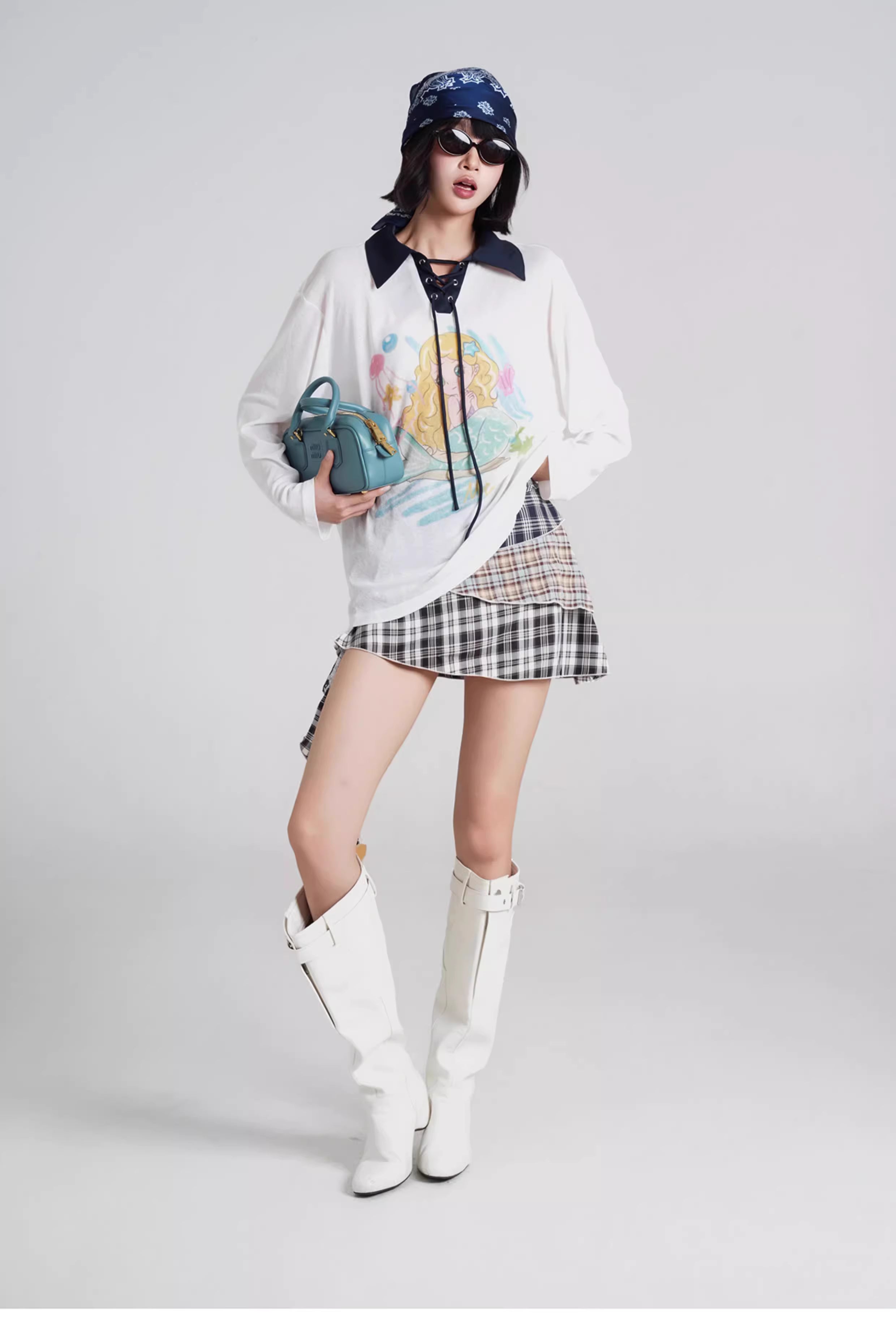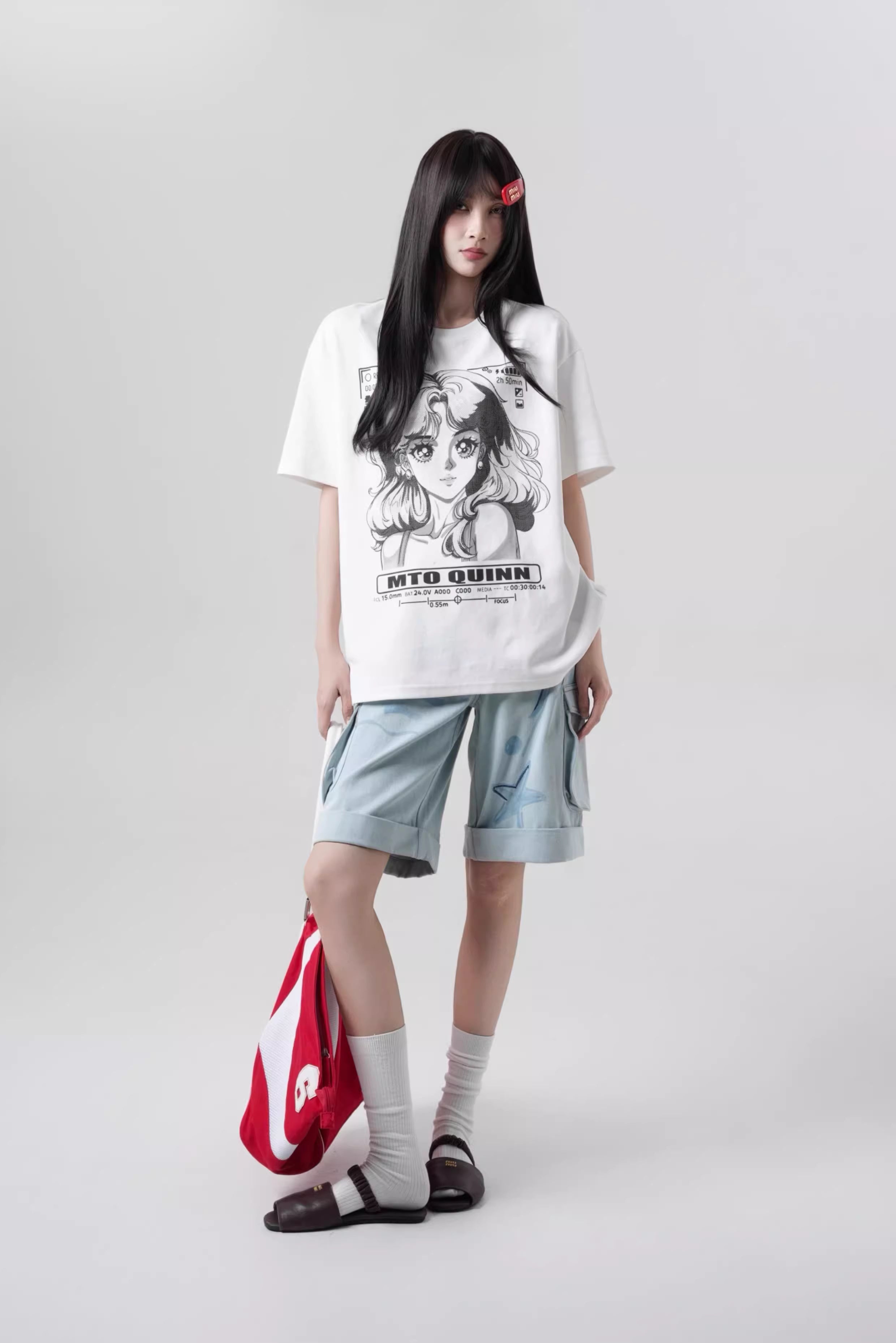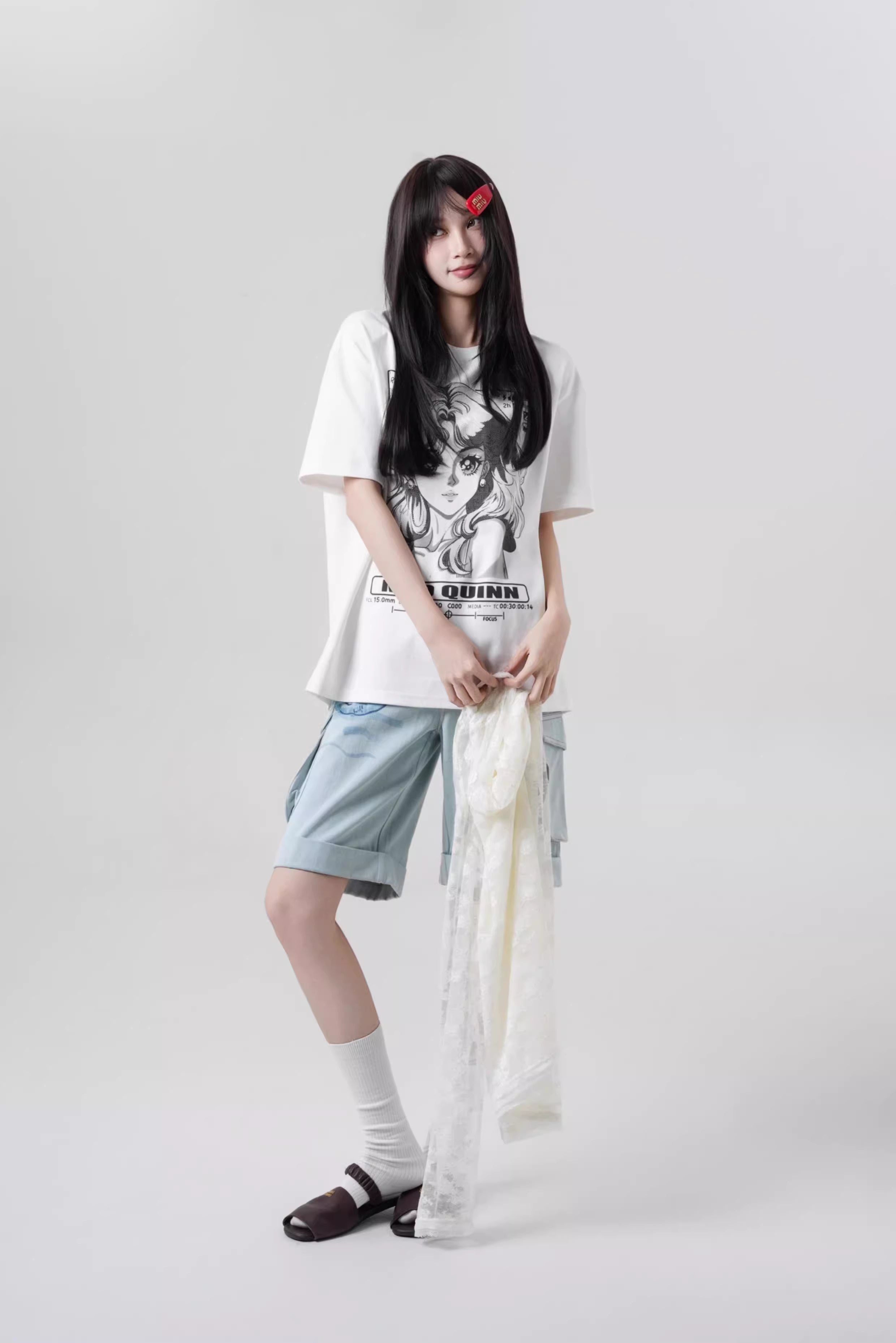 Mto Quinn Black and white anime cute girl short-sleeved T-shirt