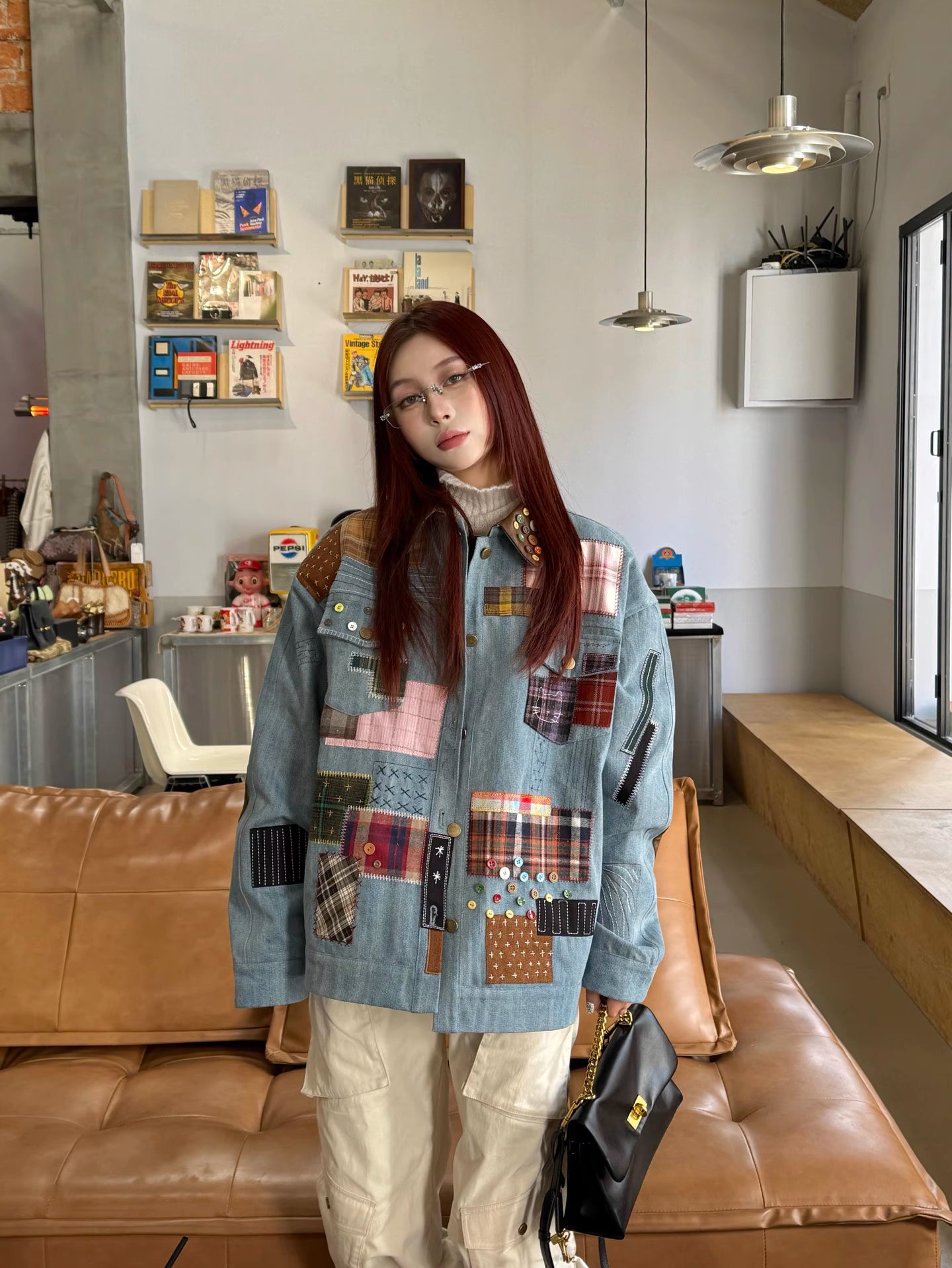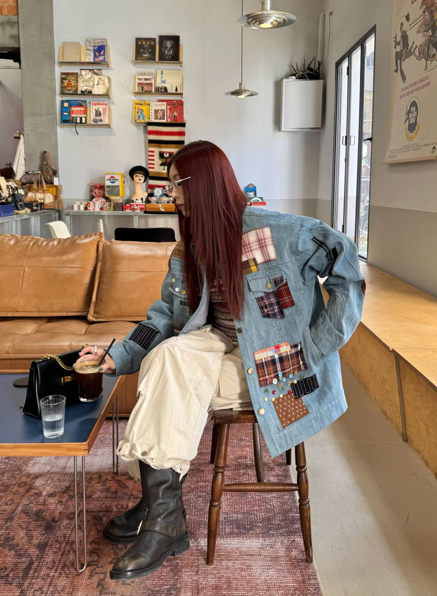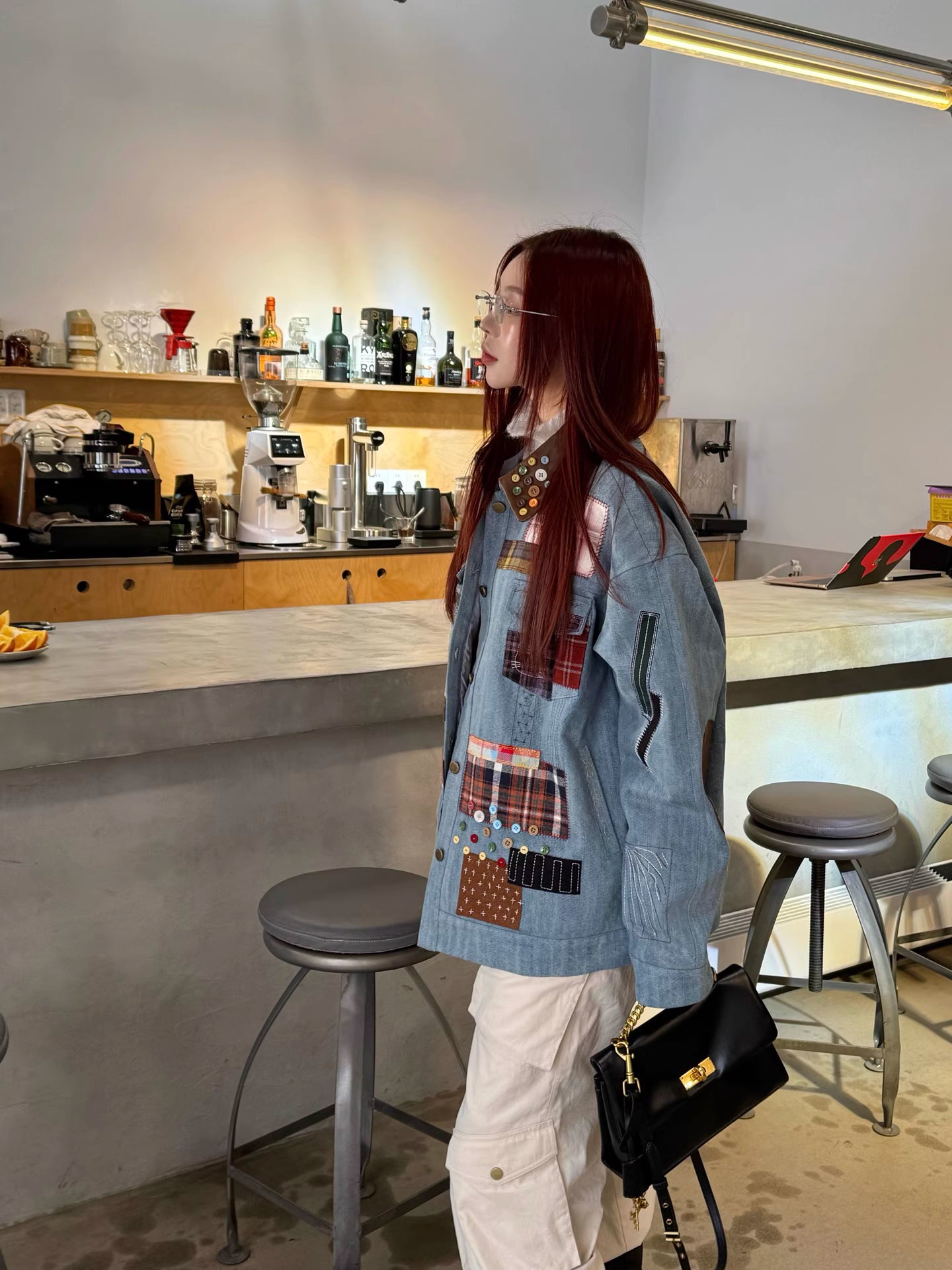 SOMESOWE FAKE TWO STRIPED PATCHWORK CREWNECK