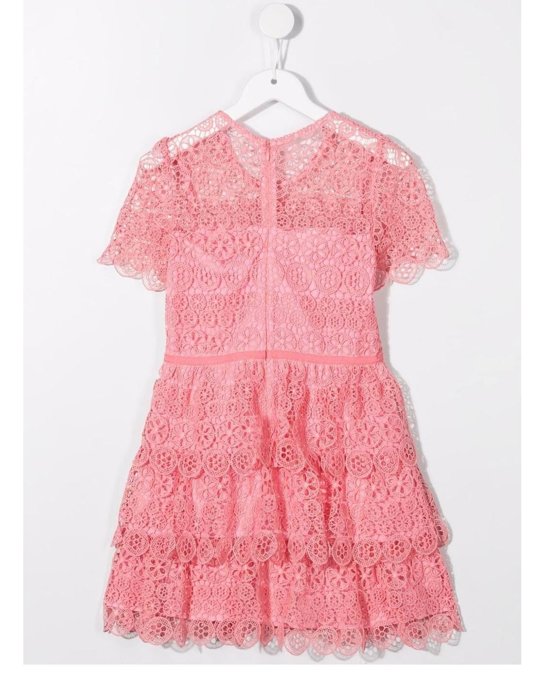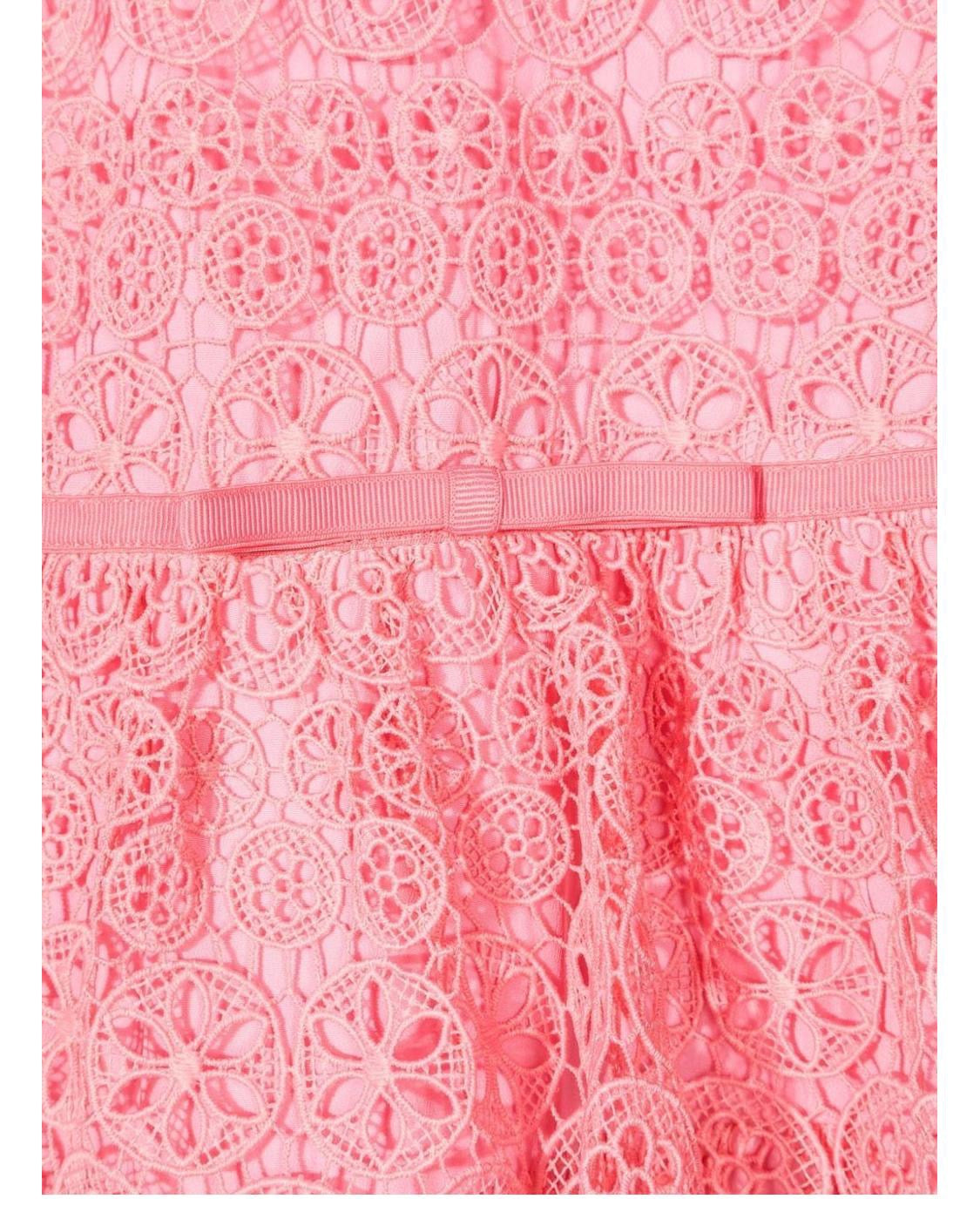 SELF-PORTRAIT KIDS PINK GUIPURE BOW BELT MINI DRESS