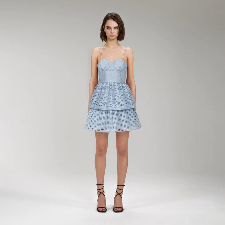 SELF-PORTRAIT LIGHT BLUE COTTON BRODERIE ANGLAISE MINI DRESS