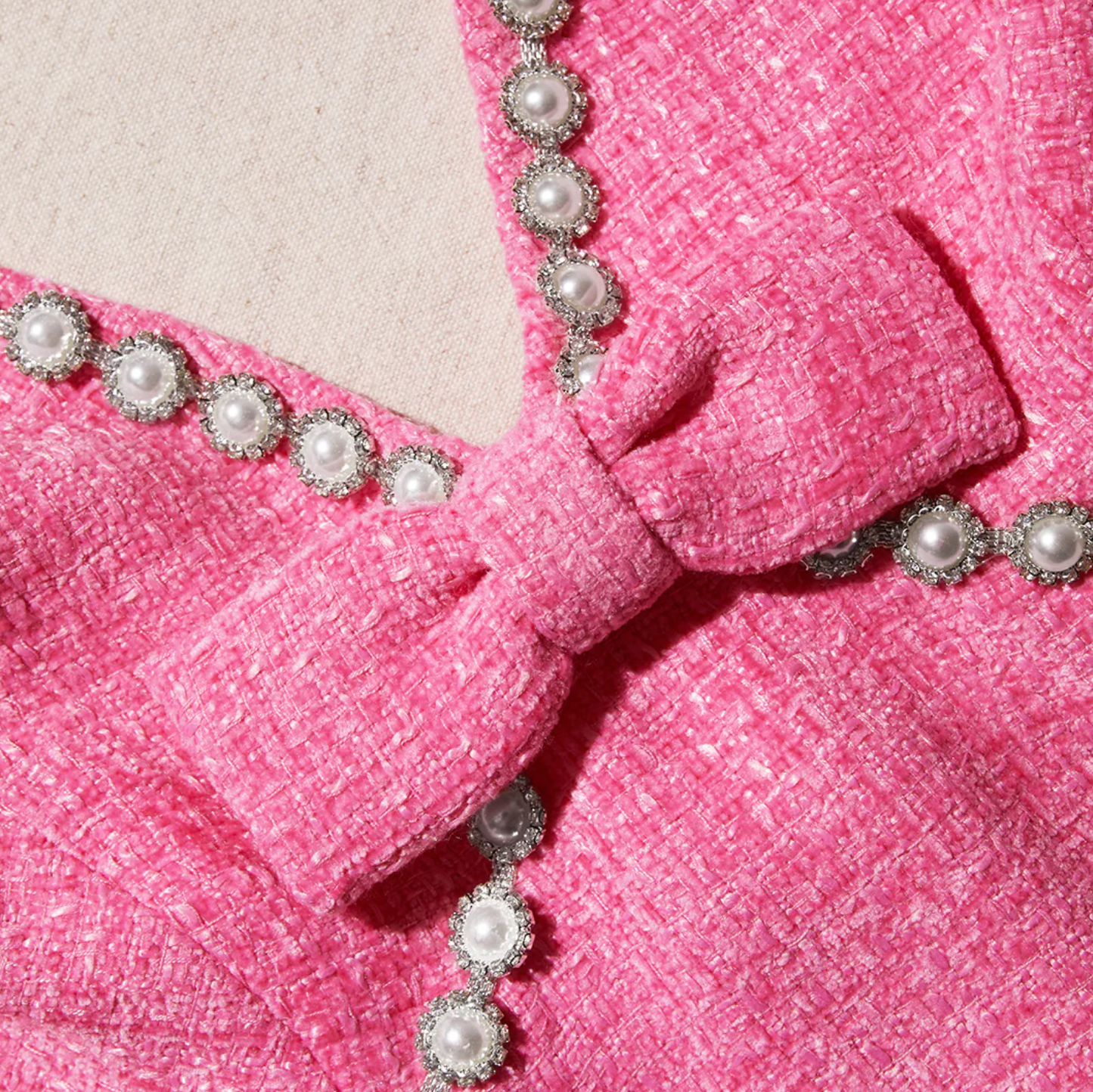 SELF-PORTRAIT PINK BOUCLE V-NECK MINI DRESS