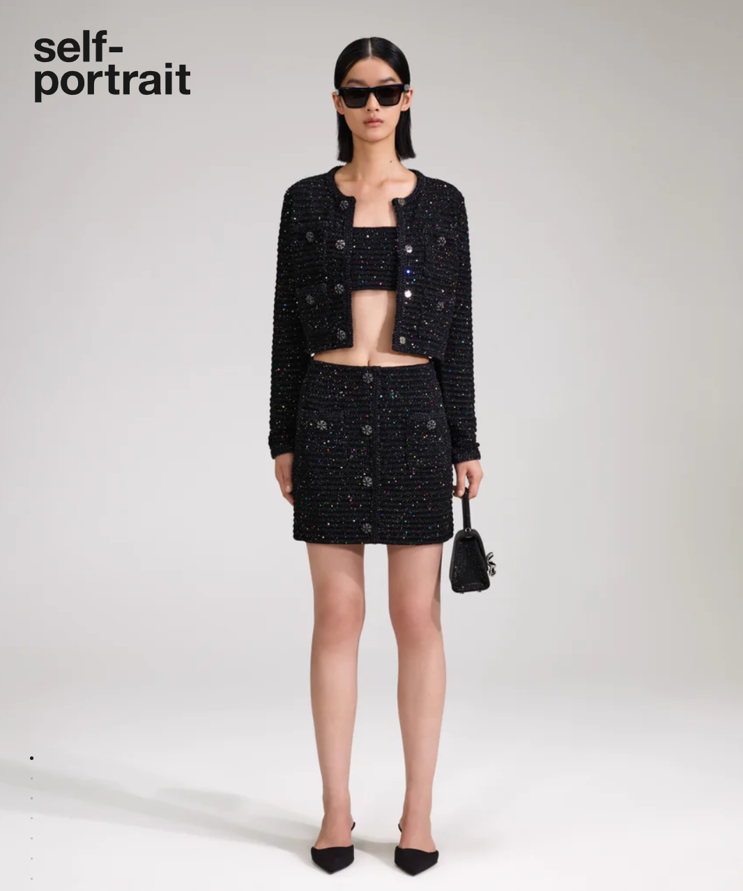 SELF-PORTRAITBLACK SEQUIN KNIT SKIRT