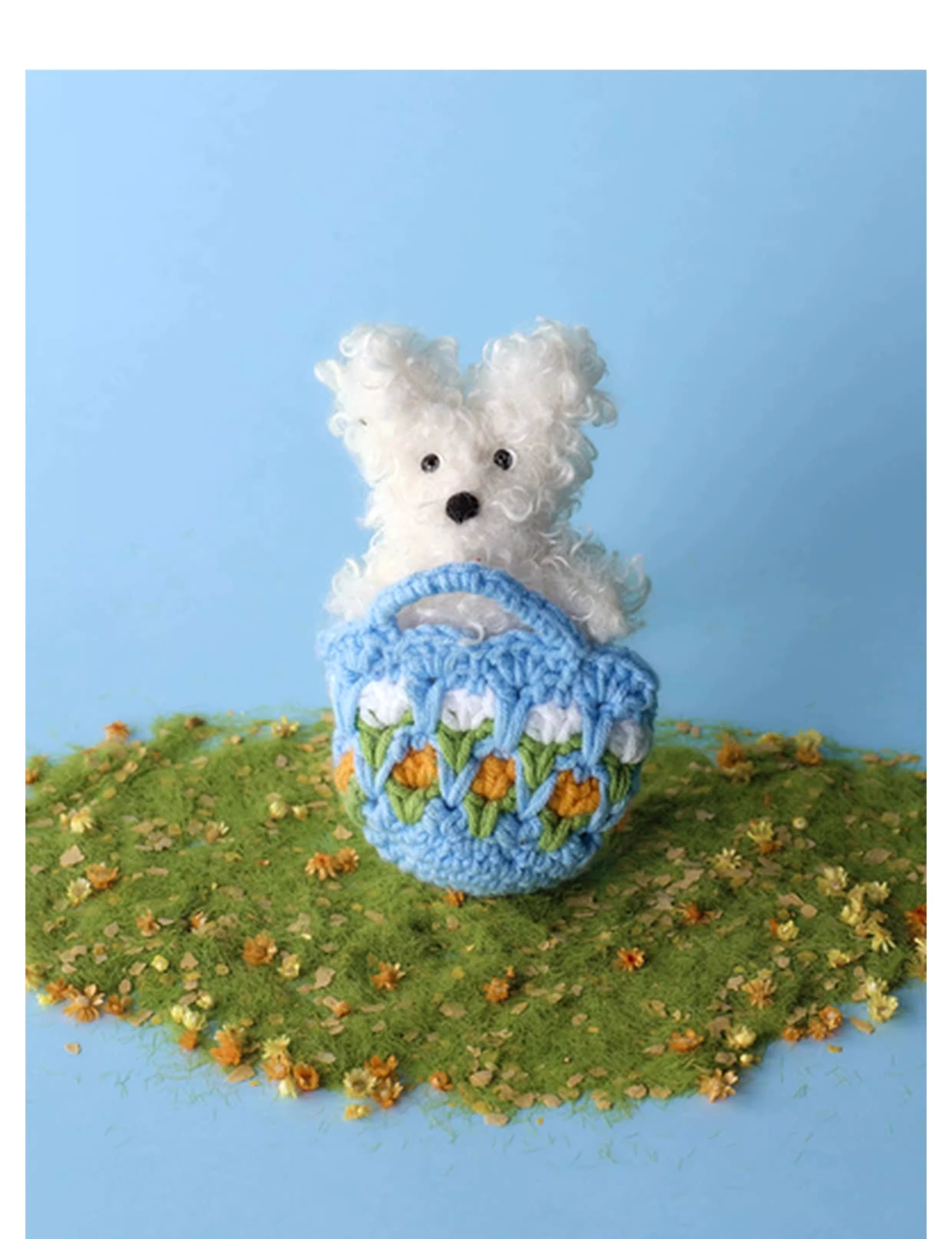 SFSG White mini messy dog in a flower basket