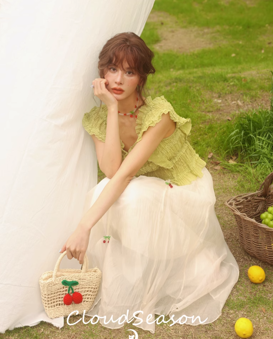 CLOUD SEASON CHERRY GAUZE HALF SKIRT