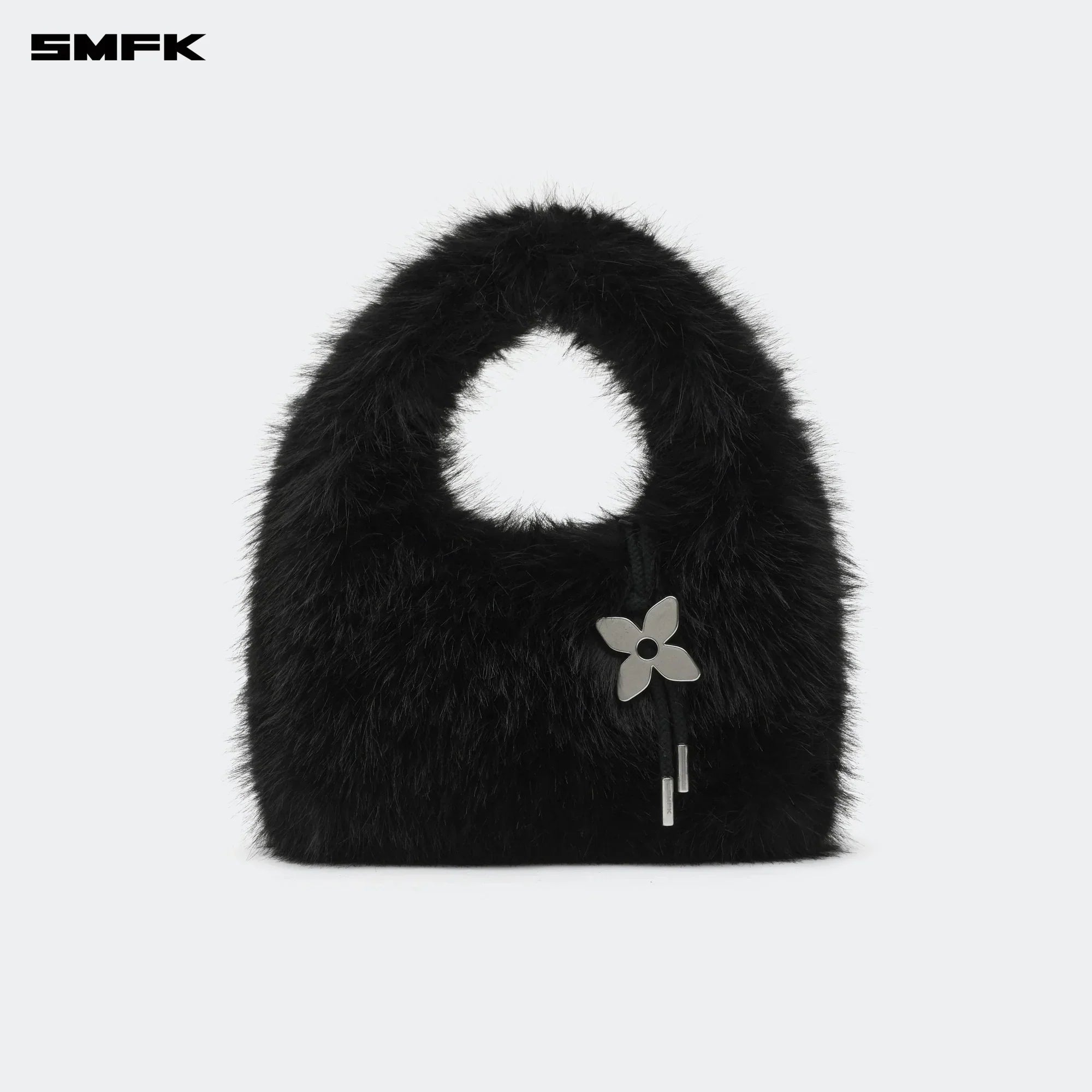 - Design: SMFK's faux fur bag designed in 2024 draws inspiration from the perfectly natural curved shapes that pebbles create when polished by the power of water. The brand has extracted inspiration from the traditional Chinese jade pendants and sachets worn on the waist, placing a more modern and minimalist Compass metal flower pendant charm on the zipper.