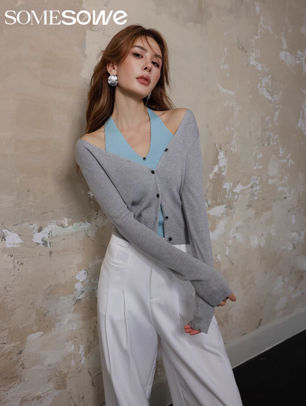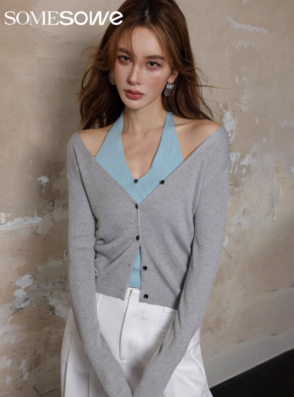 SOMESOWE MERCERIZED NECK HANGING KNIT FAKE TWO PIECES