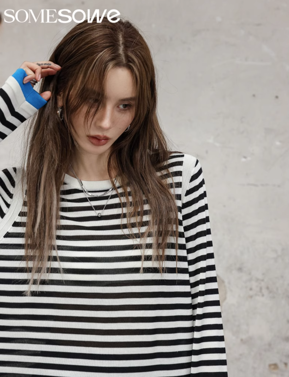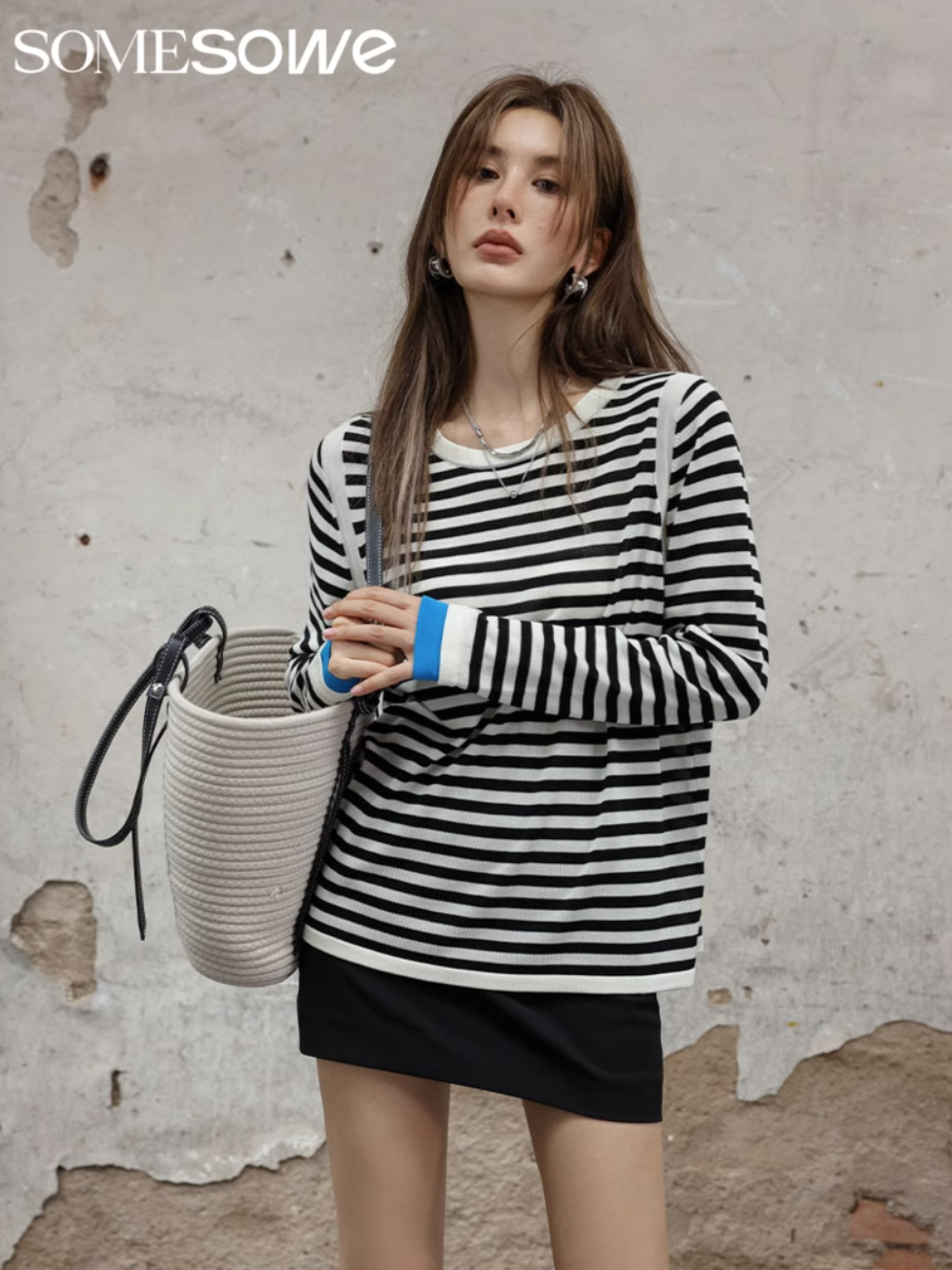 SOMESOWE STRIPED MICRO PERMEABLE KNITTED SUN PROTECTION LONG SLEEVE
